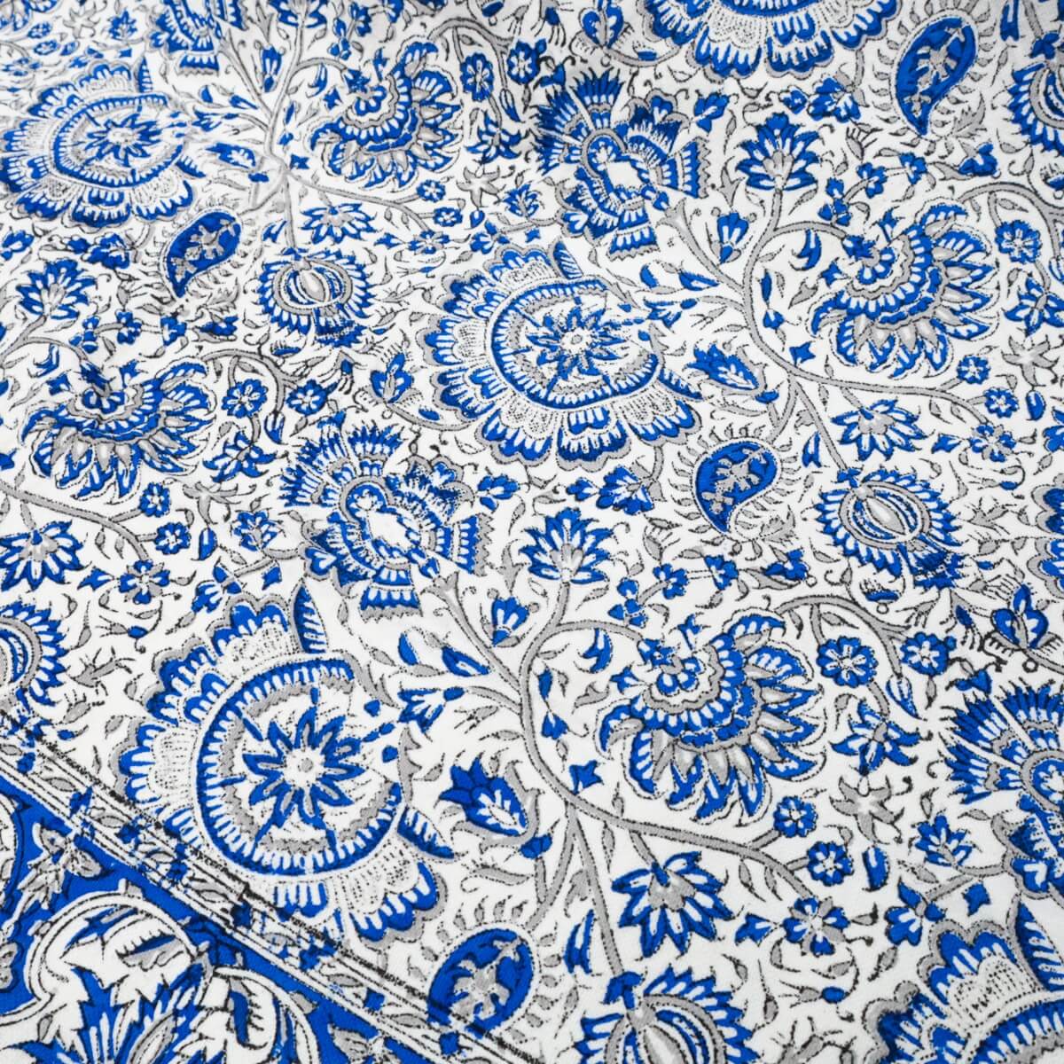 唐草模様はペルシャからシルクロードを伝って日本に伝来したと言われますが、エキゾチックなペイズリー柄はどことなく懐かしいレトロな雰囲気も持っていて思いのほか、インテリアに良く馴染みます。生地は、しっかりと厚みのある木綿100%の一枚布で、しなやかで柔らかな質感。シワになりにくいので、ソファカバーやベッドカバー、また、カーテンのような間仕切りに使ったりと大変使いやすいインテリアファブリックで、これ一枚でお部屋の印象がぐっと素敵になります。