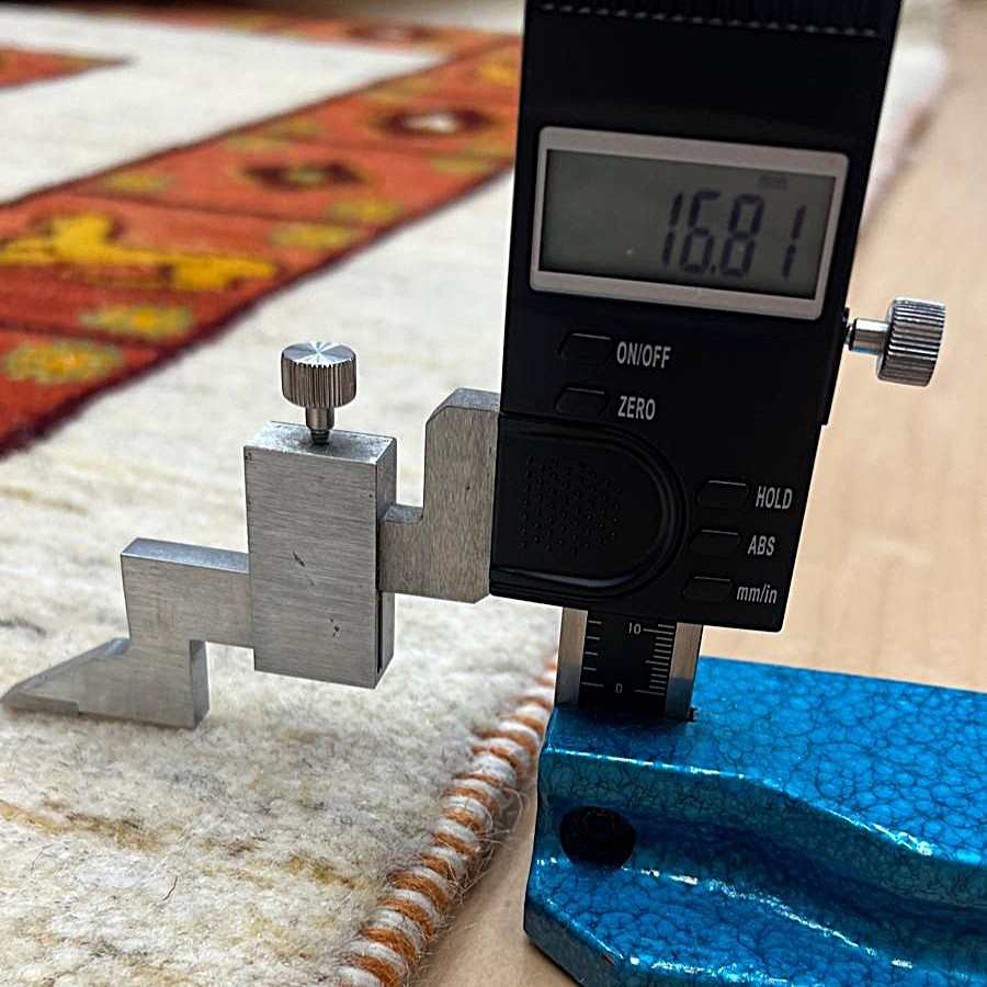 織りは、10cmあたり、およそ40から45目という普通のギャッベの数倍にもなる大変細かなルリバフ。細かく繊細なデザインで手触りはふわりと柔らか。やんわりと沈み込む踏み心地です。腕の良い選りすぐられた織り子だけが手掛ける極上の手仕事です。