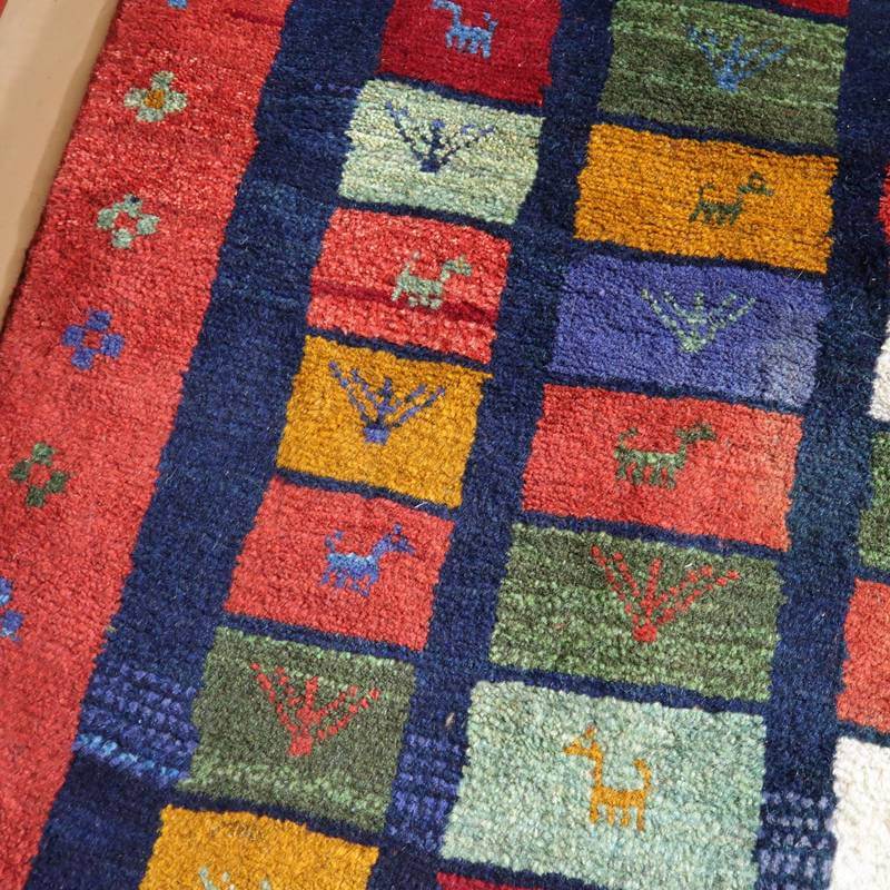 このシラーズでギャッベは、天然の羊毛と染料を使い、手編みで織り上げる大自然から生まれたイラン遊牧民の絨毯になります。大地に敷いて使うための適度な厚みがありますので直接座ったり、寝転んで使うのに最適です。