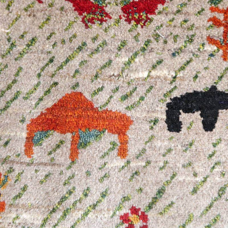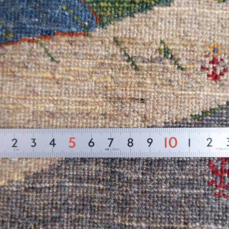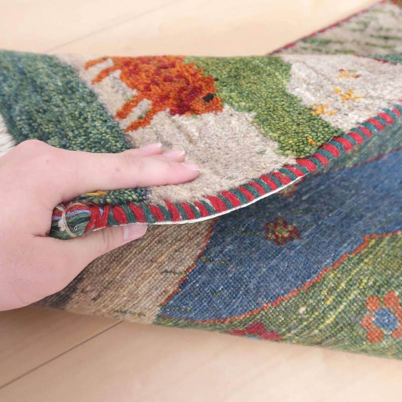 織りは、10cmあたり、およそ40から45目という普通のギャッベの数倍にもなる大変細かなルリバフ。抜け毛が少なく、手触りはふわりと柔らか。踏んだ時やんわりと沈み込む踏み心地です。腕の良い選りすぐられた織り子だけが手掛ける極上の手仕事です。