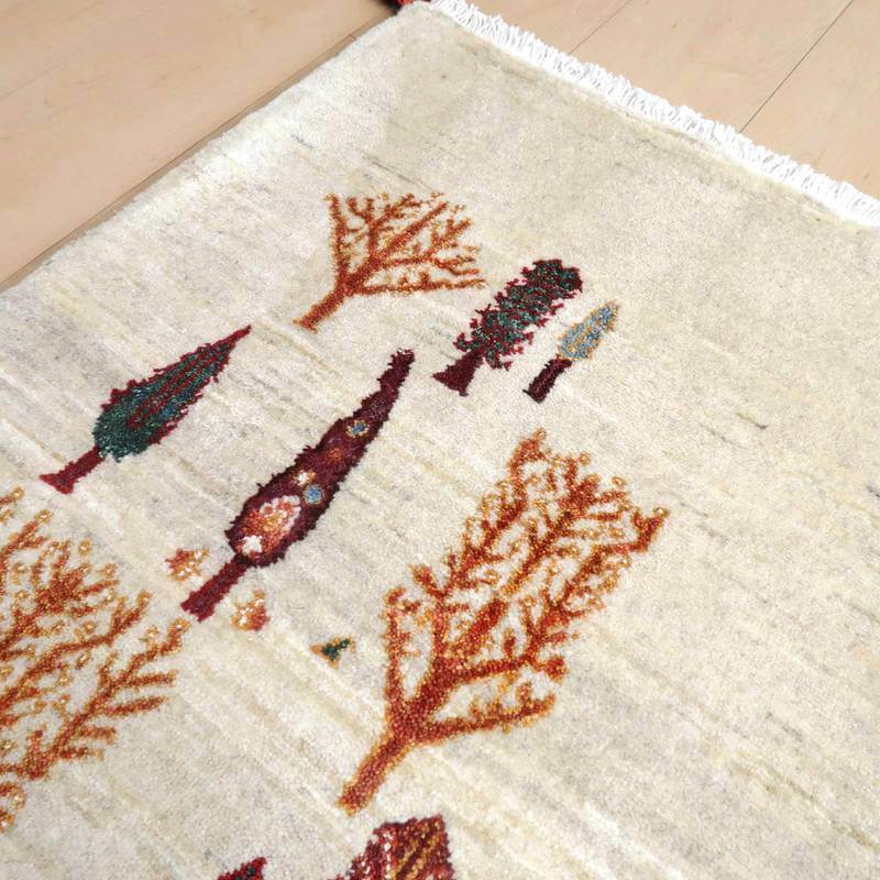 織りは、10cmあたり、およそ40から45目という普通のギャッベの数倍にもなる大変細かなルリバフ。抜け毛が少なく、手触りはふわりと柔らか。踏んだ時やんわりと沈み込む踏み心地です。腕の良い選りすぐられた織り子だけが手掛ける極上の手仕事です。