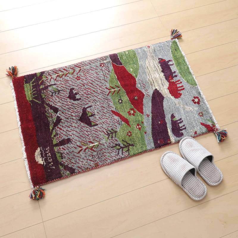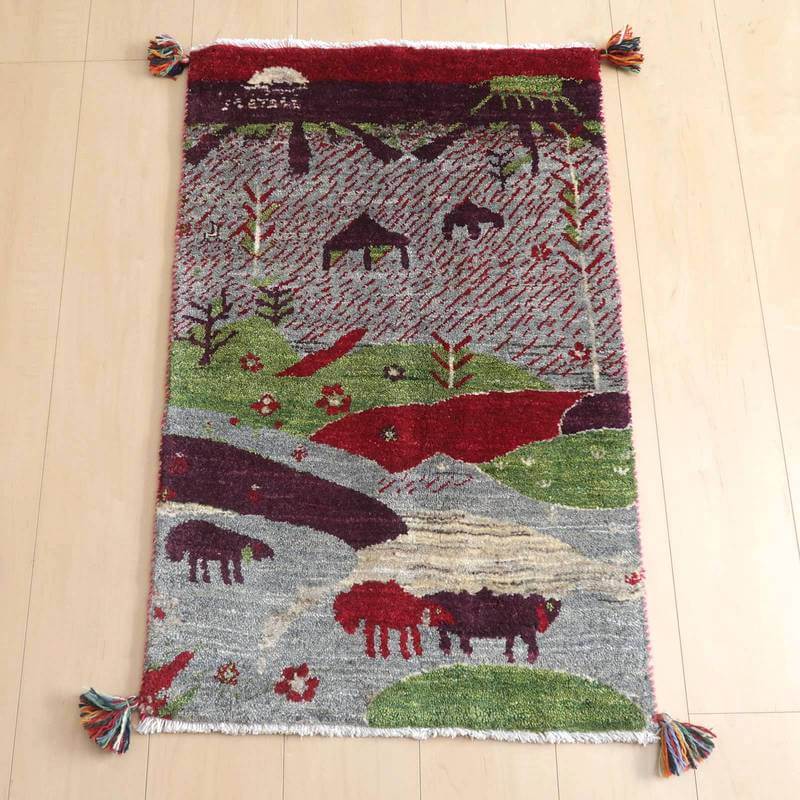 照明の違いで色合いが多少違って見えます。また、ギャッベは毛足に向きがあるので、見る方向で、明るかったり暗かったりも見えます。