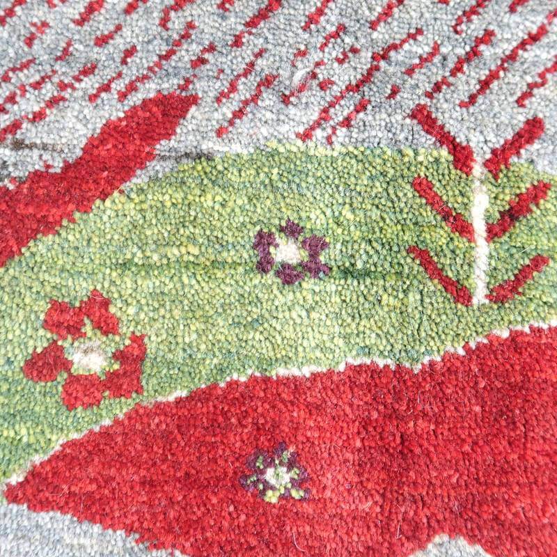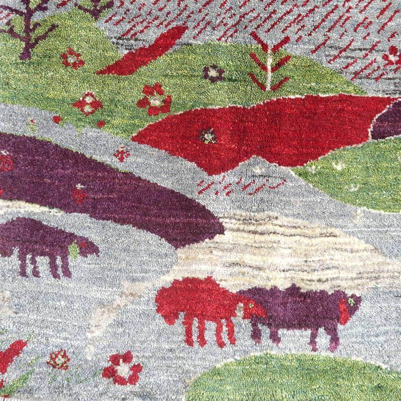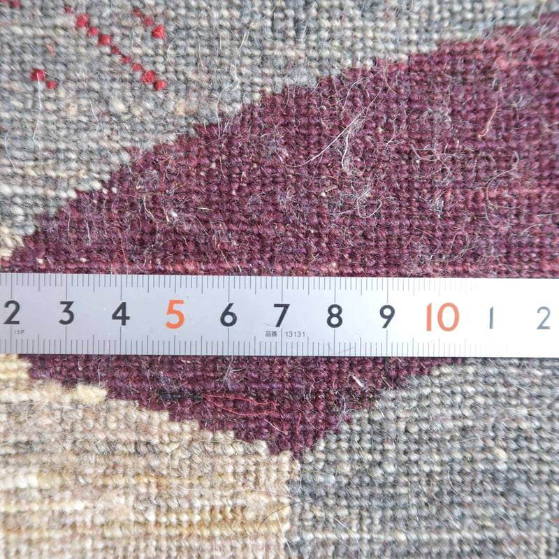 織りは、10cmあたり、およそ40から45目という普通のギャッベの数倍にもなる大変細かなルリバフ。抜け毛が少なく、手触りはふわりと柔らか。踏んだ時やんわりと沈み込む踏み心地です。腕の良い選りすぐられた織り子だけが手掛ける極上の手仕事です。