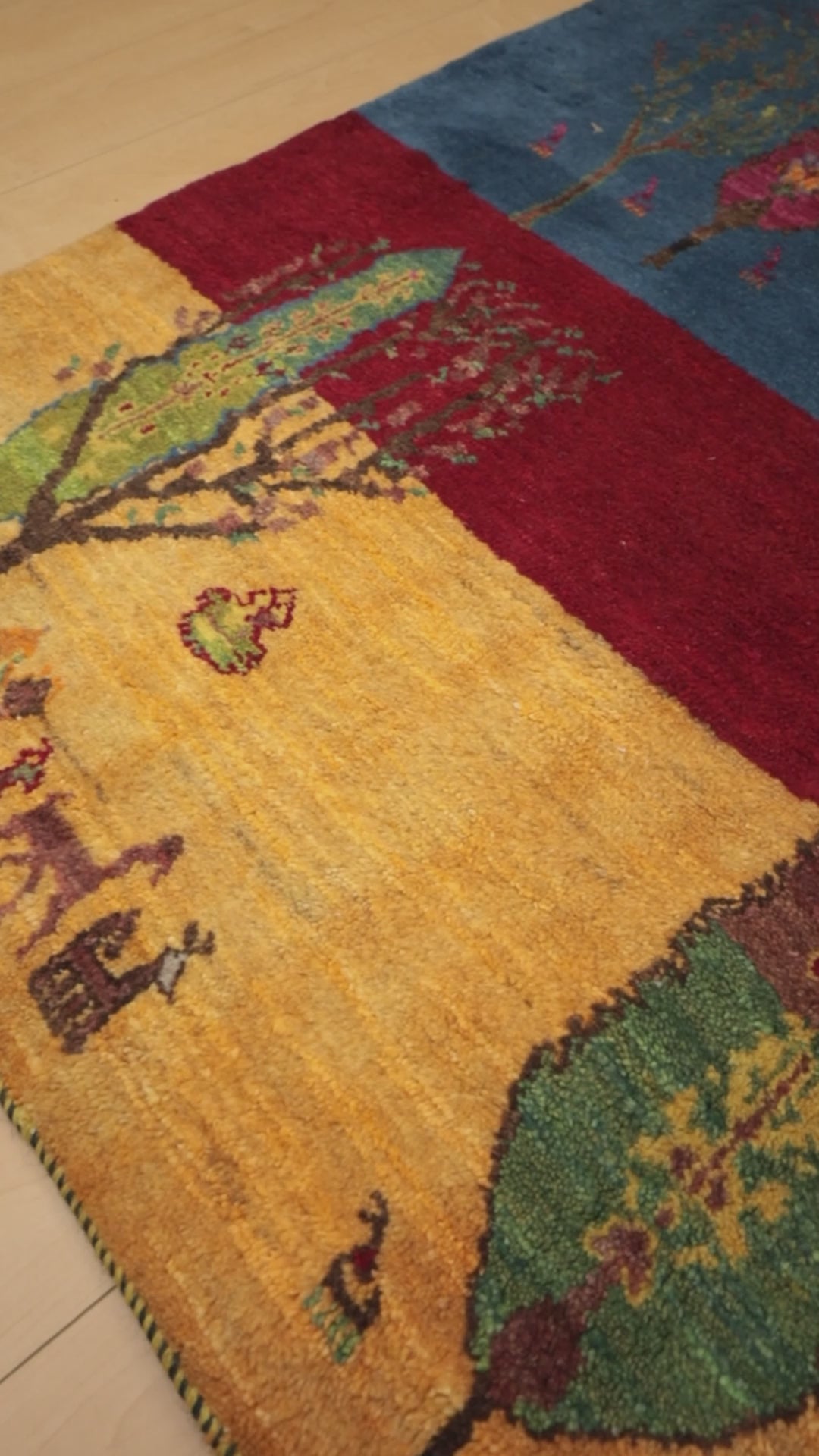 - デザインの魅力:空と大地を思わせる三段構成に糸杉や動物が描かれ、素朴な自然の情景が楽しく表現されています。