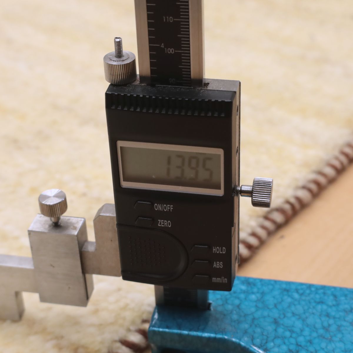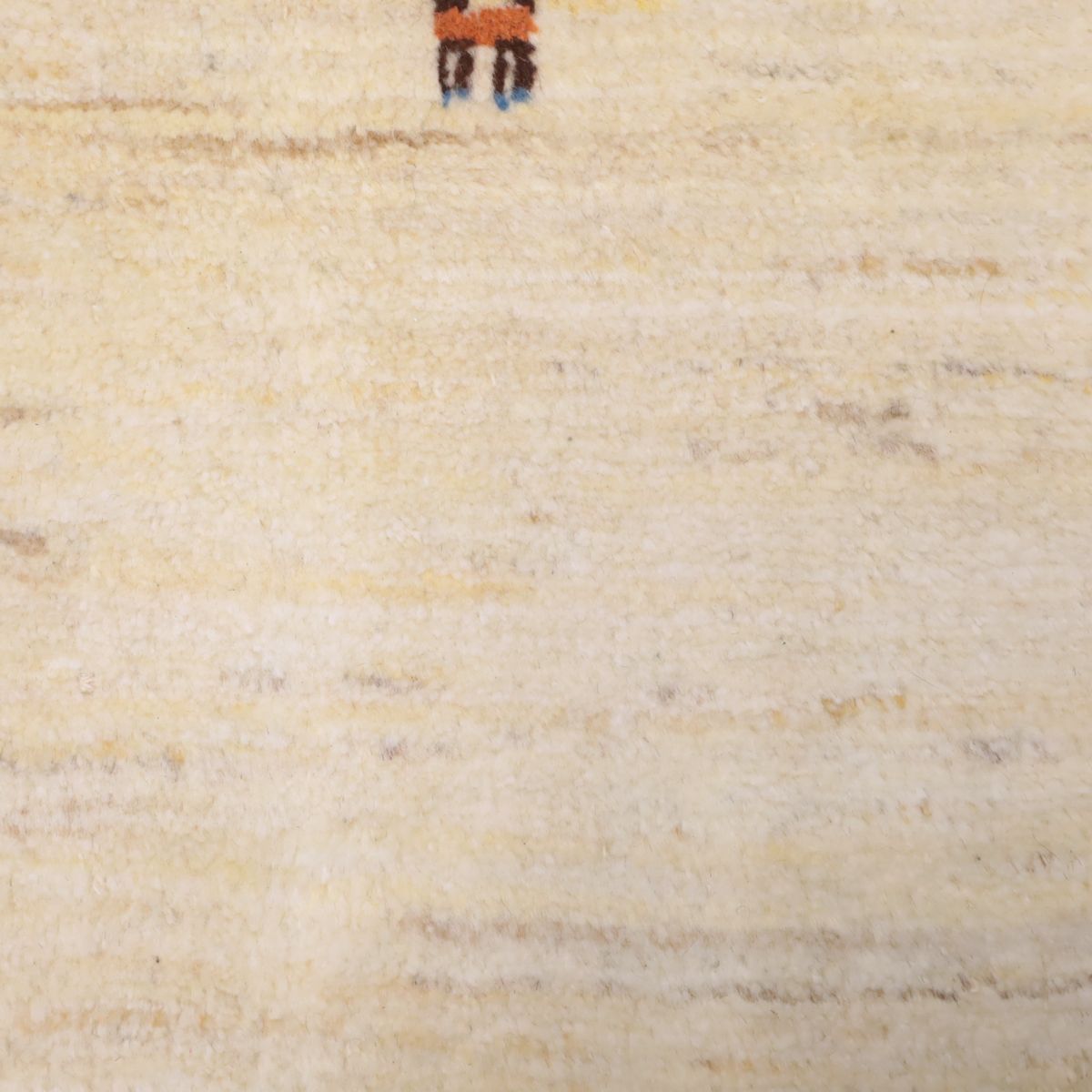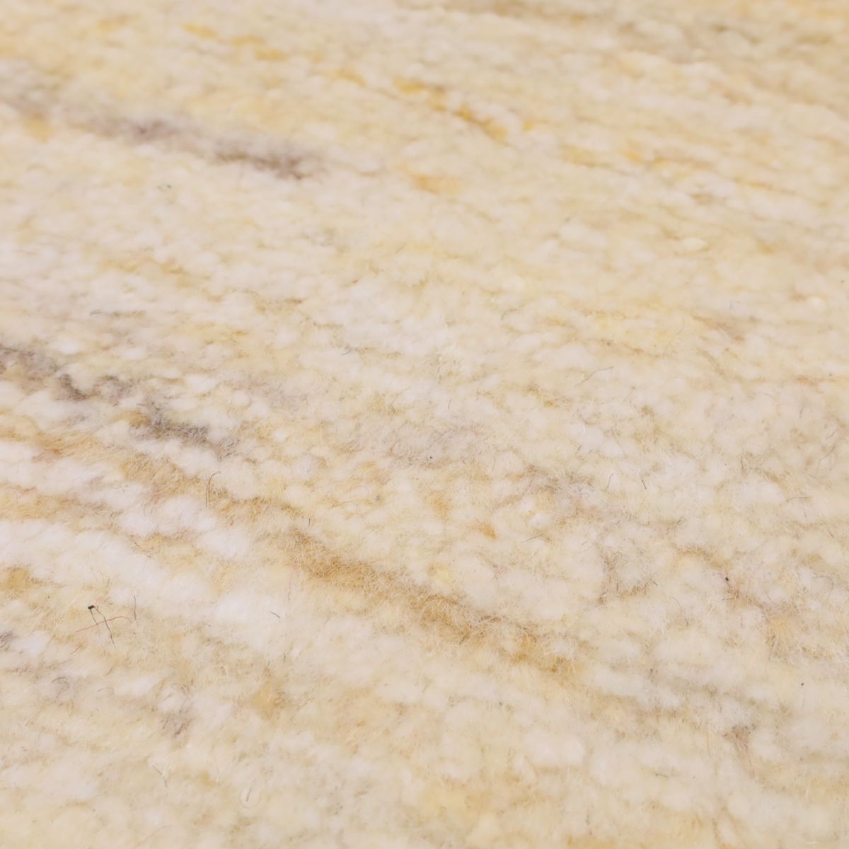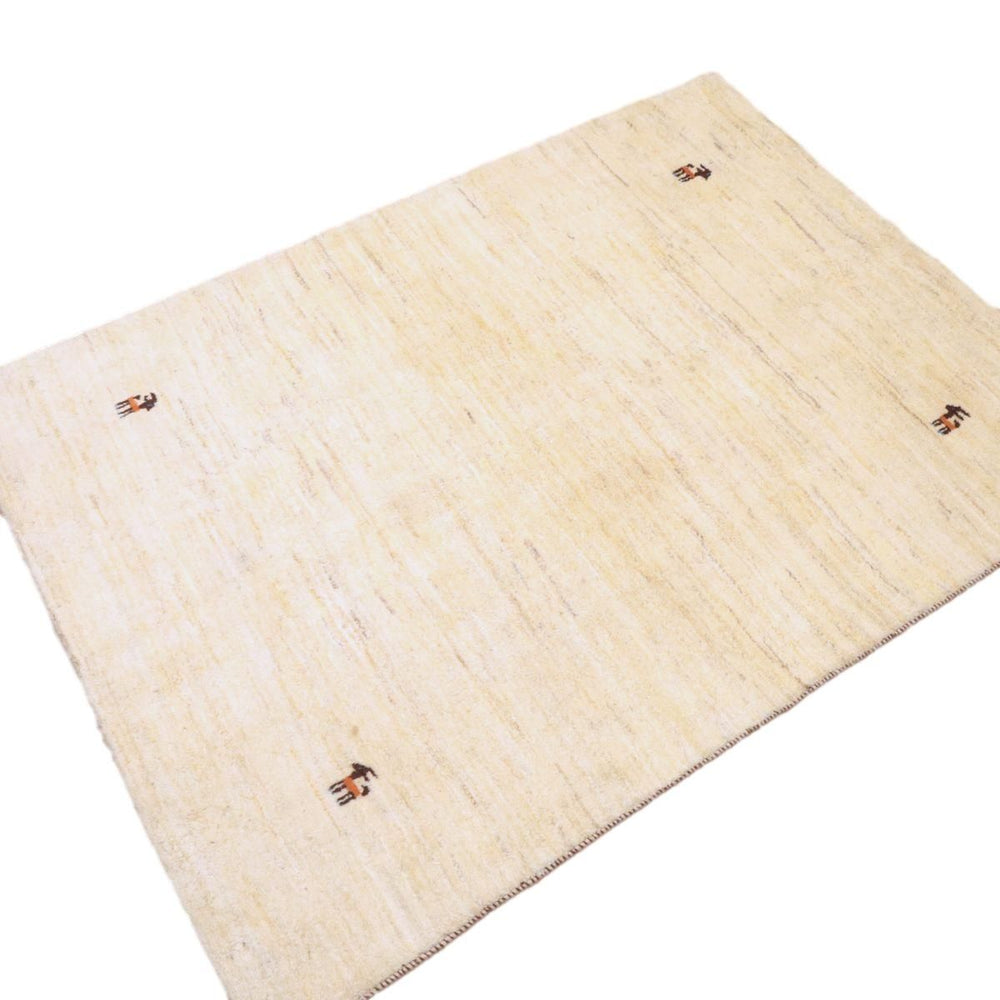 羊の毛色をそのまま活かした無染色の羊色のベースは、どんな場所にも似合うナチュラルな風合い。薄いグレーやベージュのグラデーションがやんわり入った、シンプルなデザインのギャッベです。