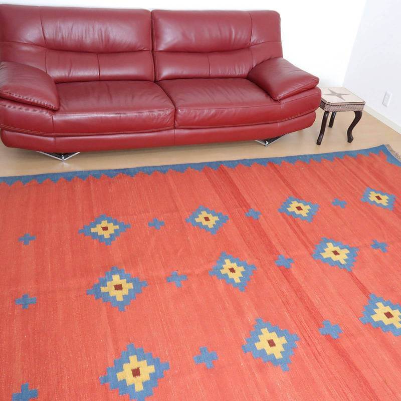 ペルシャ(イラン)産のキリムは、1_飽きのこないデザイン、2_いつの時代もあらゆるインテリアに馴染む、3_モダンで芸術性の高い図柄、として世界各国で、愛用され、それゆえ模倣もされています。図柄の美しさはもちろん、長い歴史に培われてきた製法や織りのテクニックの完成度は、世界最高峰。本物志向の方、違いの分かる方に愛されています。