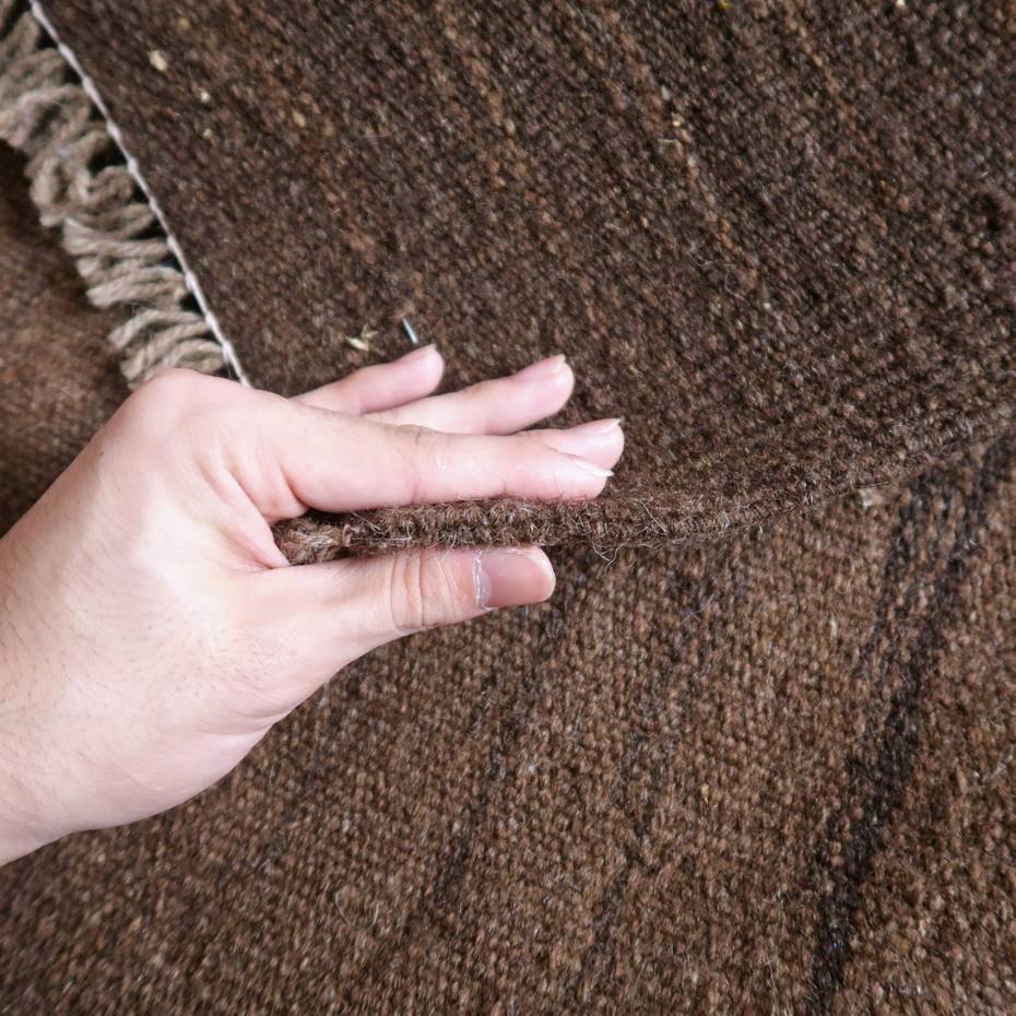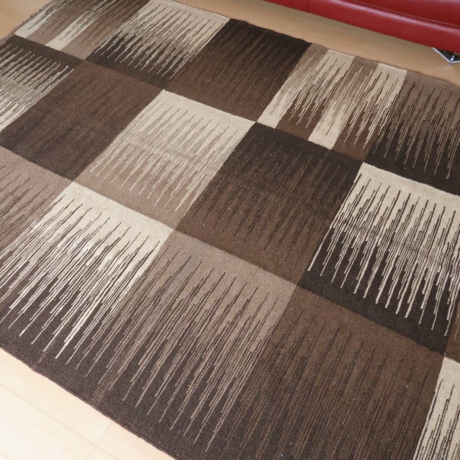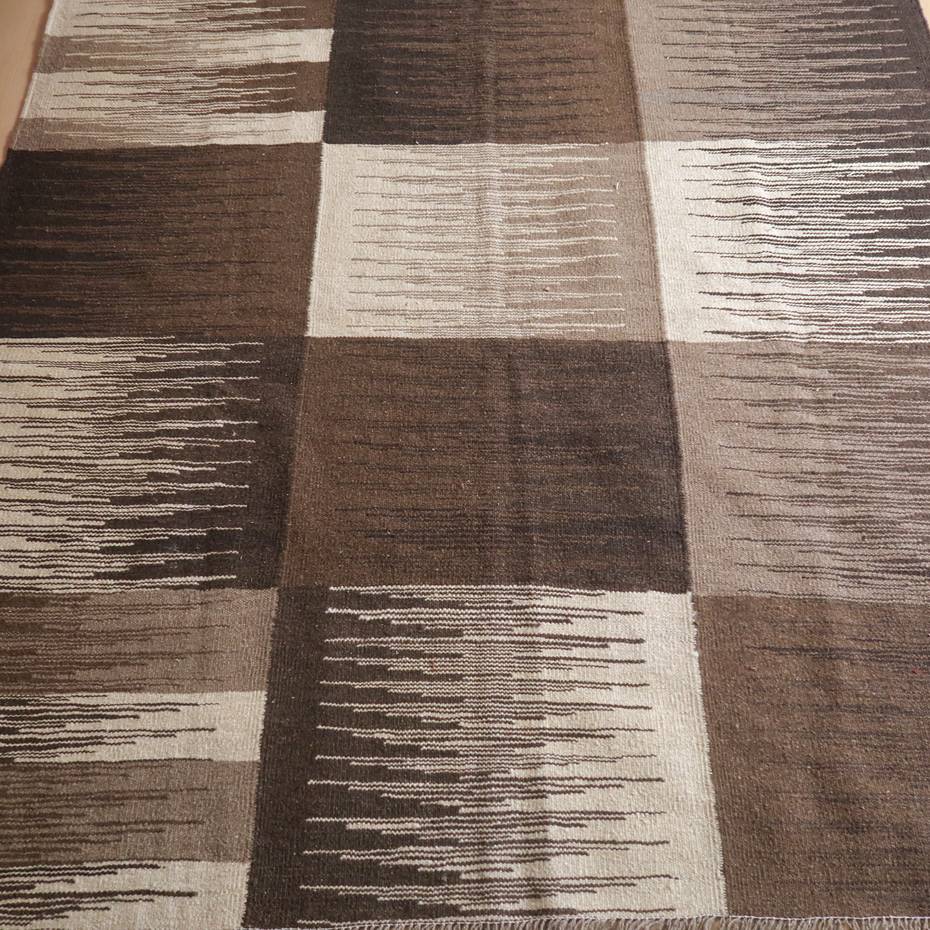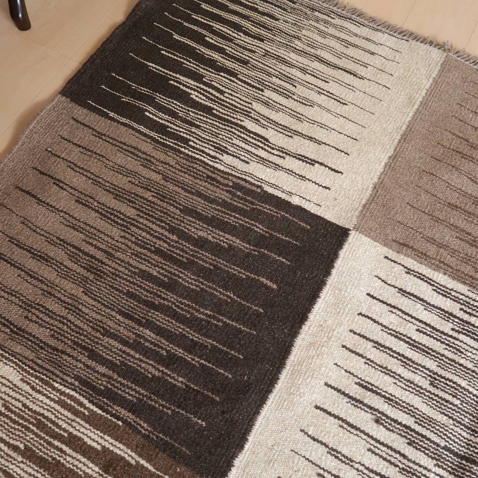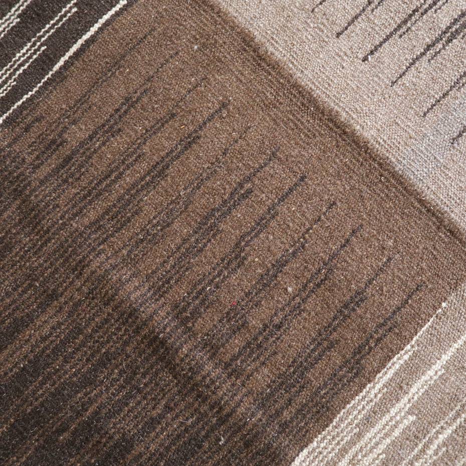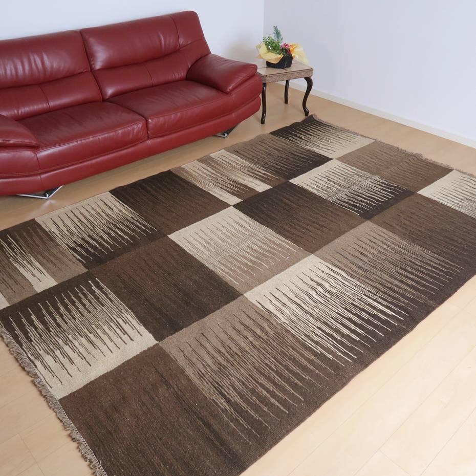 ギャッベでお馴染みのシラーズ地方カシュガイ族に伝わるキリムです。生成りや茶、グレーなどの元々の羊の毛色をそのまま活かした無染色のウールを使用したナチュラルカラーなので、敷く場所を選ばず、落ち着いた雰囲気で馴染みます。幾何学やギザギザ文様のシンプルな中にもリズムのあるモダンなデザイン。カシュガイの女性が昔ながらに織り上げたキリムなので、よく締まった丈夫な織り目で、早く仕上げる為、ゆるく粗く織られる商用生産のキリムには無い、誠実さと愛着が感じられる味わい深さがあります。作りは、平織り(ひらおり)という裏表の無い、両面を使える織り方。カシュガイ・キリムは遊牧のテント生活用の為、丈夫に織られ、洗濯も簡単、普段使いのラグとして扱いやすいキリムです。