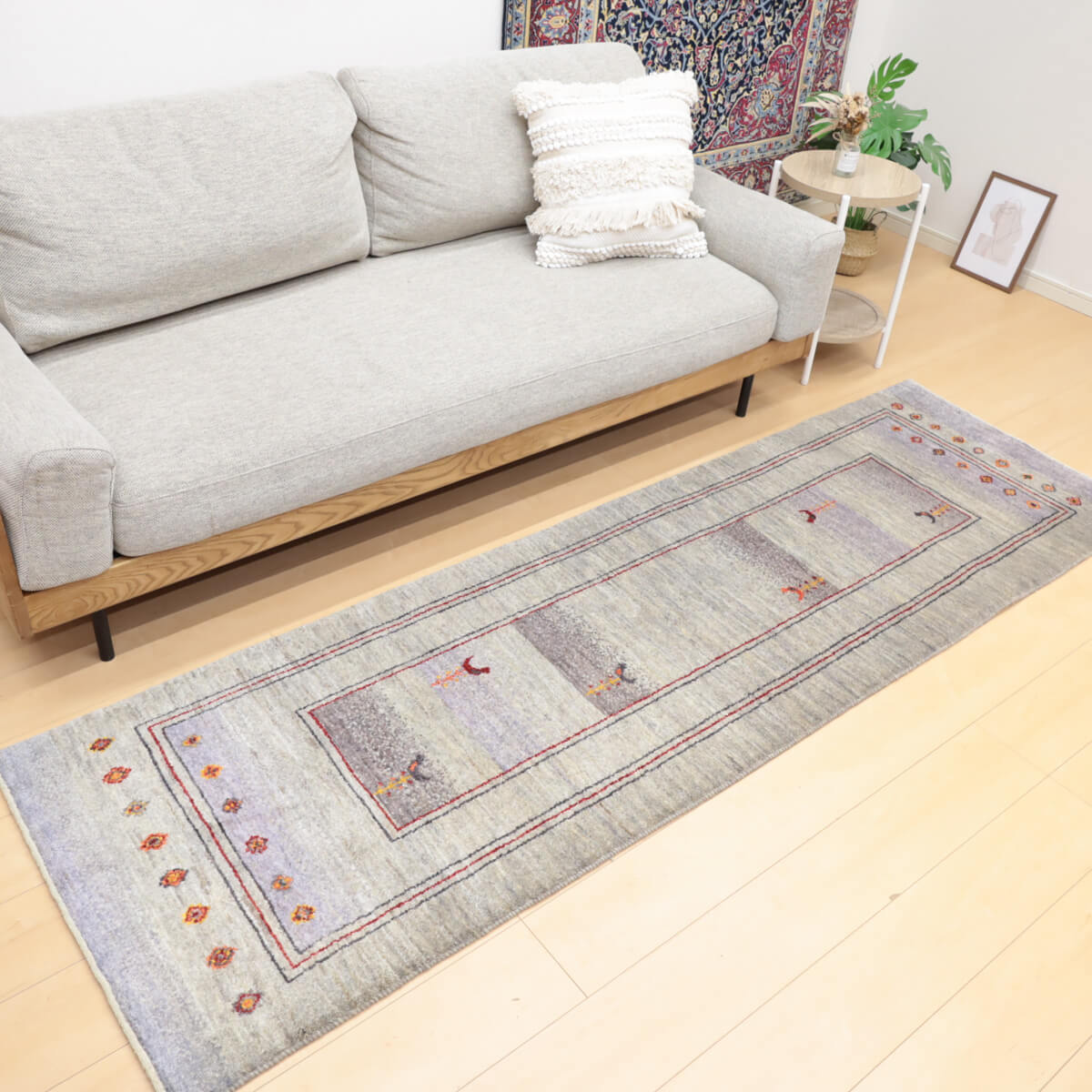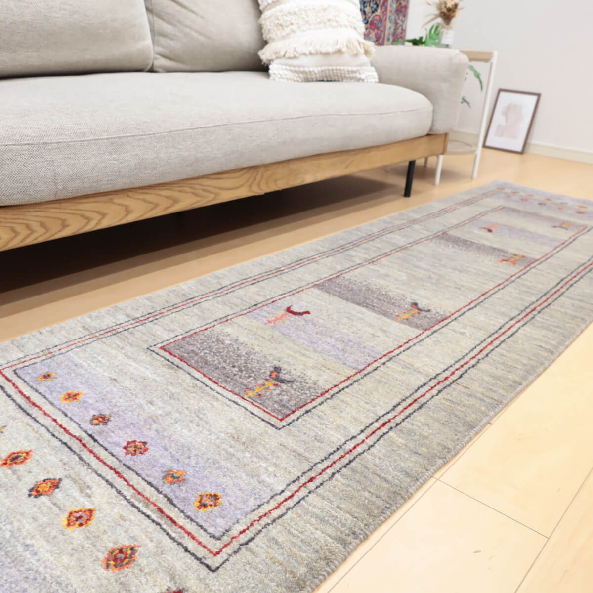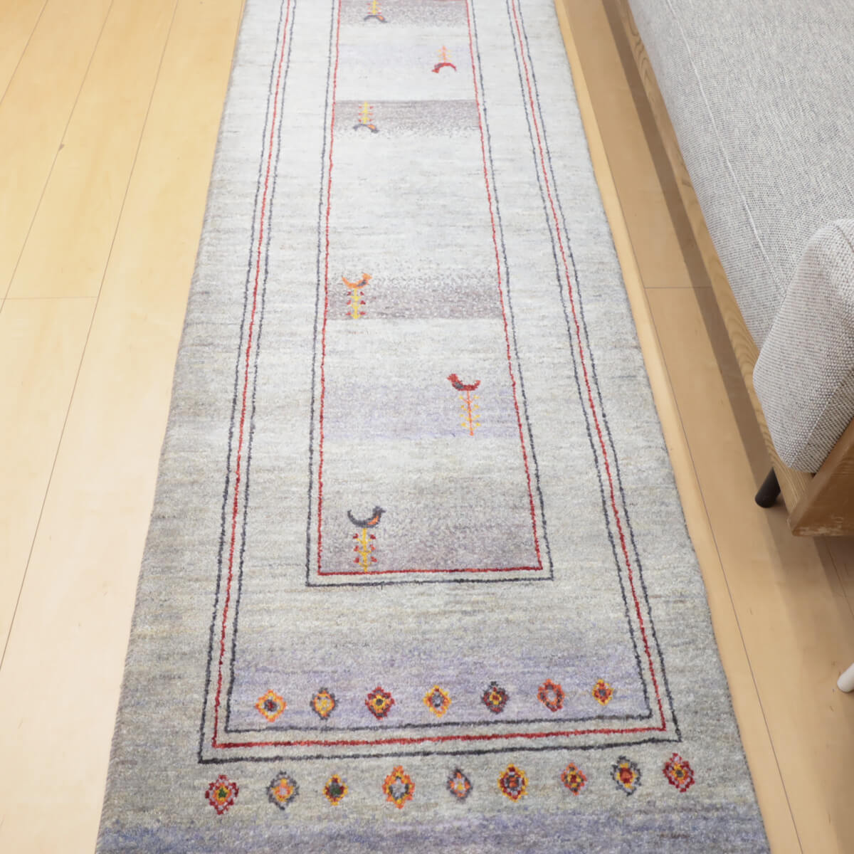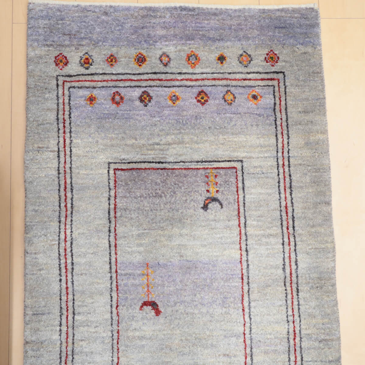 質感の良さ きめ細かく均一に織られたウール素材が、柔らかく心地よい踏み心地を実現しています。ランナー特有の扱いやすさと、イラン産ギャッベ伝統の耐久性を兼ね備え、毎日のご使用で素朴な温かみが増していく風合いが魅力です。