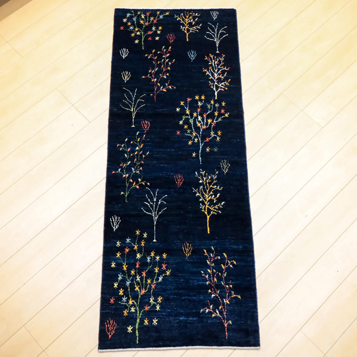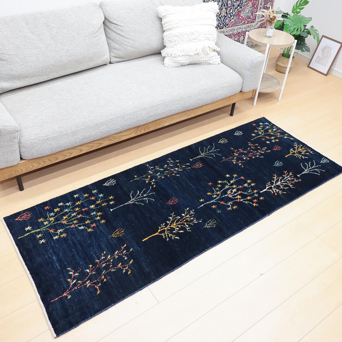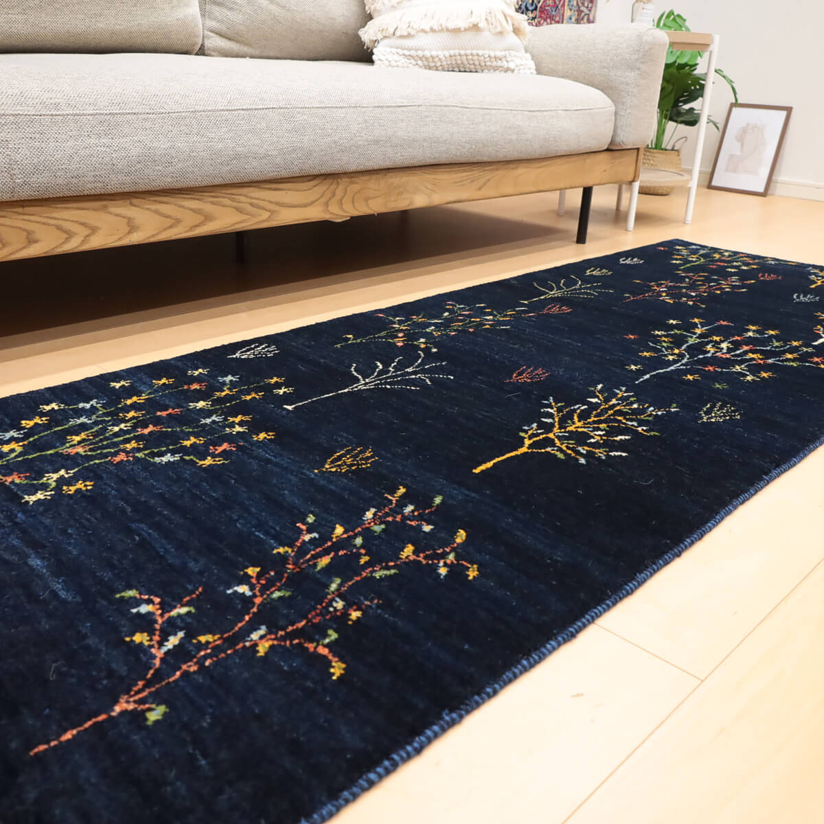 質感の良さ 手織りならではの密度の高いウール素材が、弾力性に富んだしなやかな踏み心地を実現しています。イラン産ギャッベの上質な手触りと耐久性を備えており、ランナーとしての使いやすさと、年を重ねるごとに深みが増す素材の風合いが特徴です。
