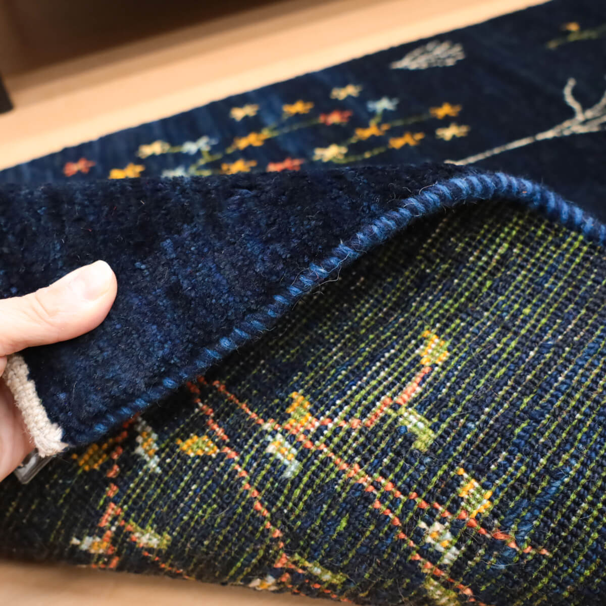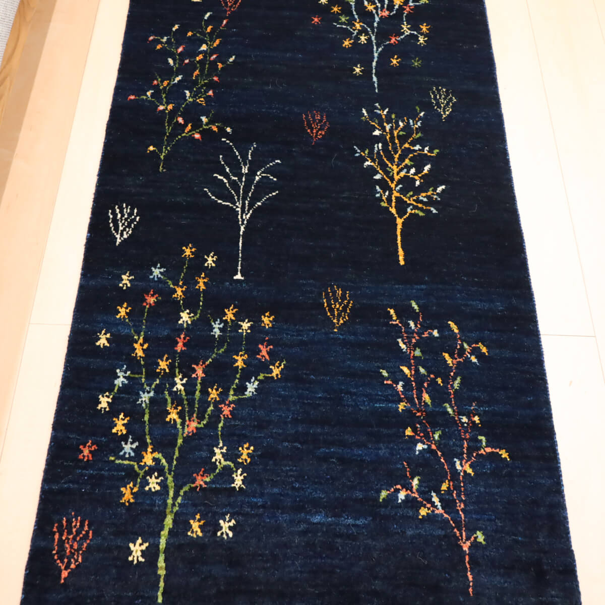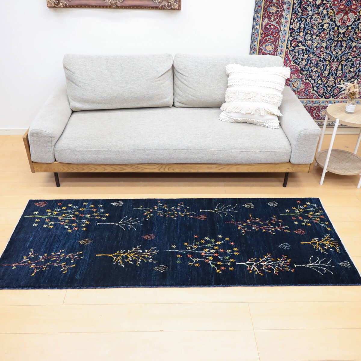 質感の良さ 手織りならではの密度の高いウール素材が、弾力性に富んだしなやかな踏み心地を実現しています。イラン産ギャッベの上質な手触りと耐久性を備えており、ランナーとしての使いやすさと、年を重ねるごとに深みが増す素材の風合いが特徴です。