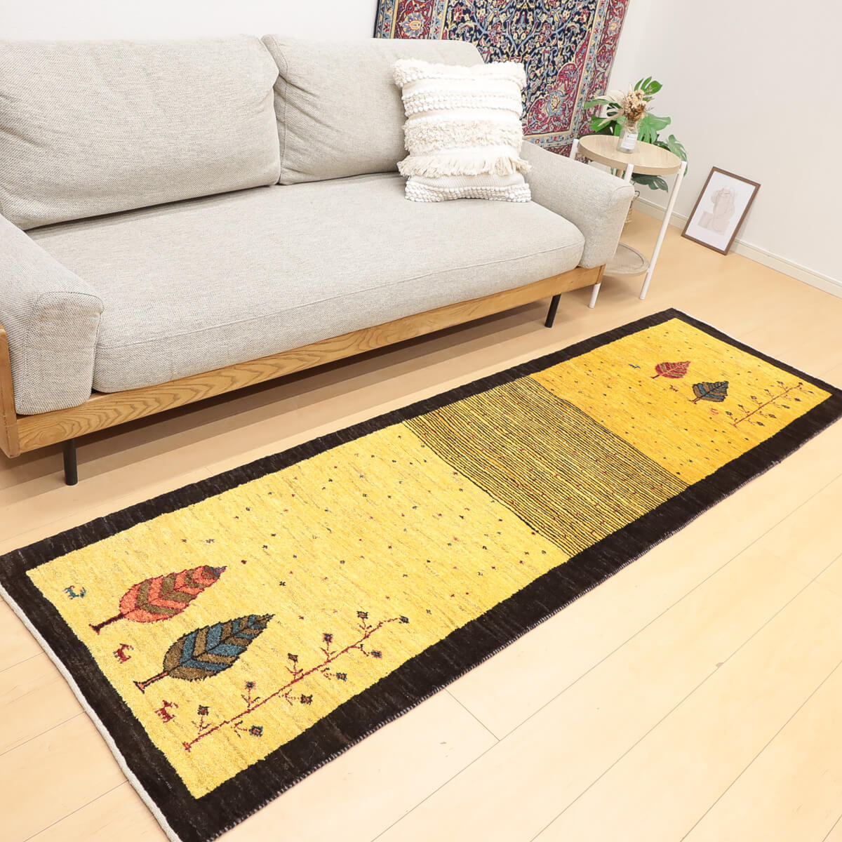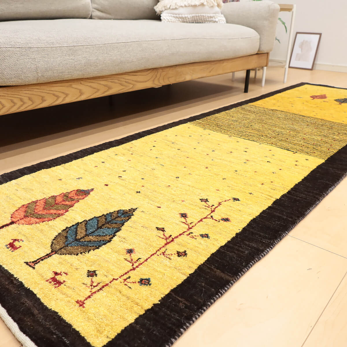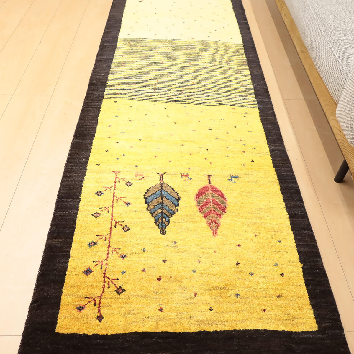 質感の良さ 手織りならではの密度の高い織り目が、柔らかく心地よい踏み心地を実現しています。イラン産ウール素材のぬくもりと弾力性に優れ、ランナーとしての扱いやすさと耐久性を兼ね備えており、毎日のご使用で素材本来の深い風合いが増していきます。