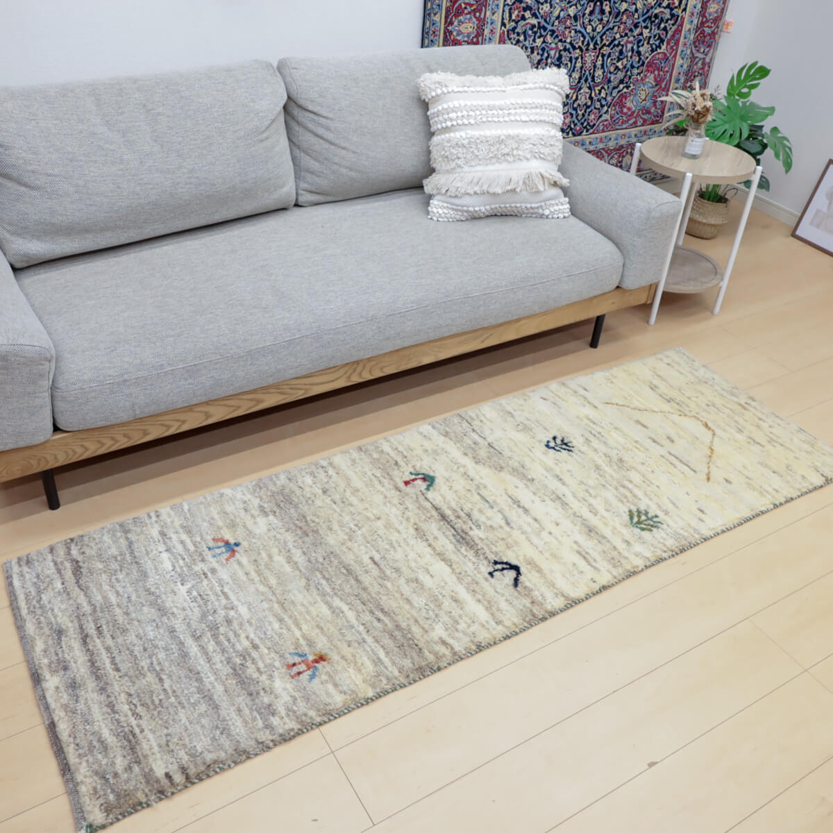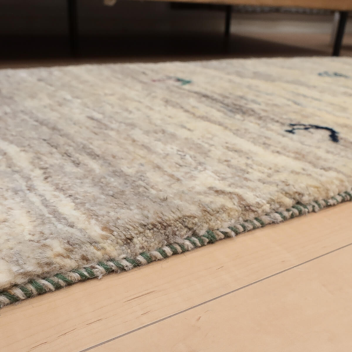 質感の良さ 手織りならではの丁寧に揃った織り目と、適度な厚みが柔らかく心地よい踏み心地を実現しています。イラン産ウール素材のぬくもりと弾力性に優れ、ランナーとしての扱いやすさと耐久性を兼ね備えており、毎日のご使用で素材の深い風合いが増していきます。