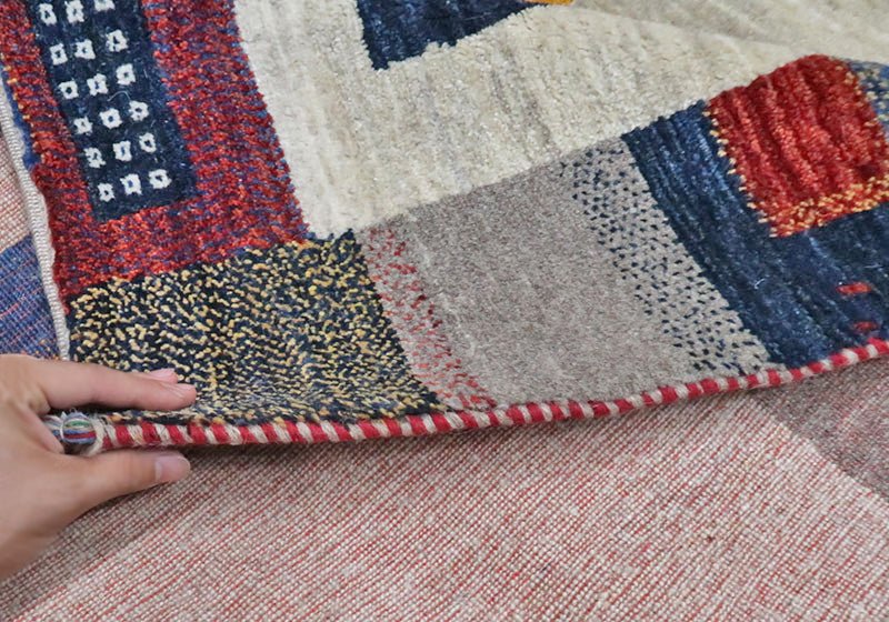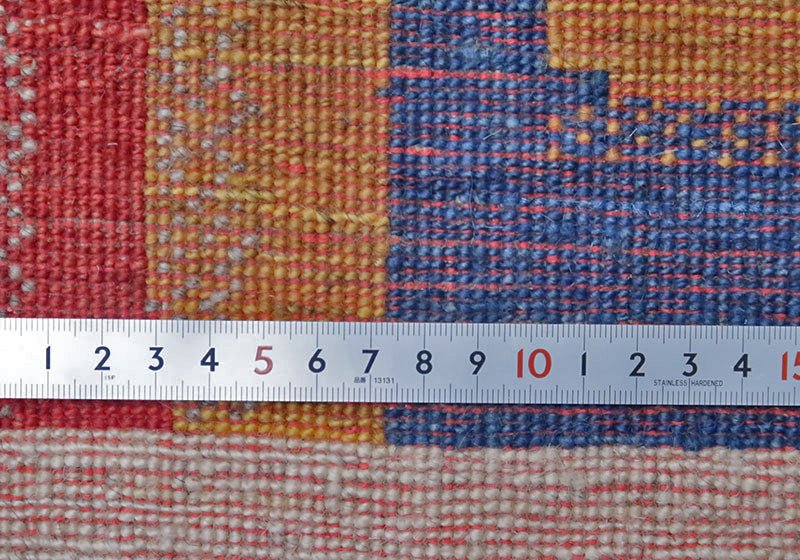織りは、10cmあたり、およそ40から45目という普通のギャッベの数倍にもなる大変細かなルリバフ。抜け毛が少なく、手触りはふわりと柔らか。踏んだ時やんわりと沈み込む踏み心地です。腕の良い選りすぐられた織り子だけが手掛ける極上の手仕事です。