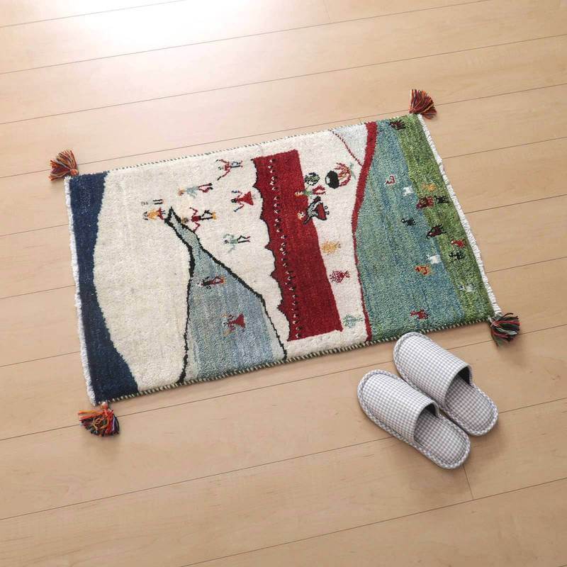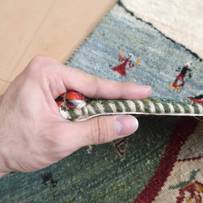 織りは、10cmあたり、およそ40から45目という普通のギャッベの数倍にもなる大変細かなルリバフ。抜け毛が少なく、手触りはふわりと柔らか。踏んだ時やんわりと沈み込む踏み心地です。腕の良い選りすぐられた織り子だけが手掛ける極上の手仕事です。
