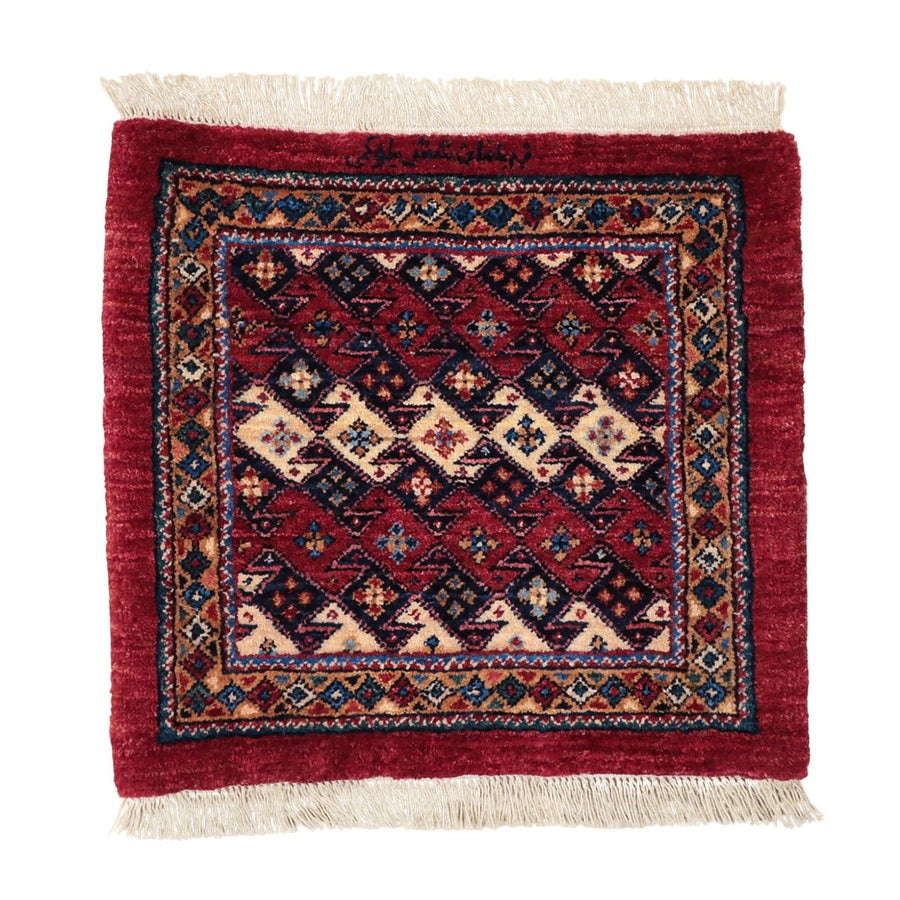 レンガ色を基調に伝統的な幾何学模様を配置した、上品な華やかさがたいへん美しいデザイン。目の詰まったさらりと肉厚の生地、踏むたびに、しっとりハリのあるウールの感触が心地の良いハイランクの品です。