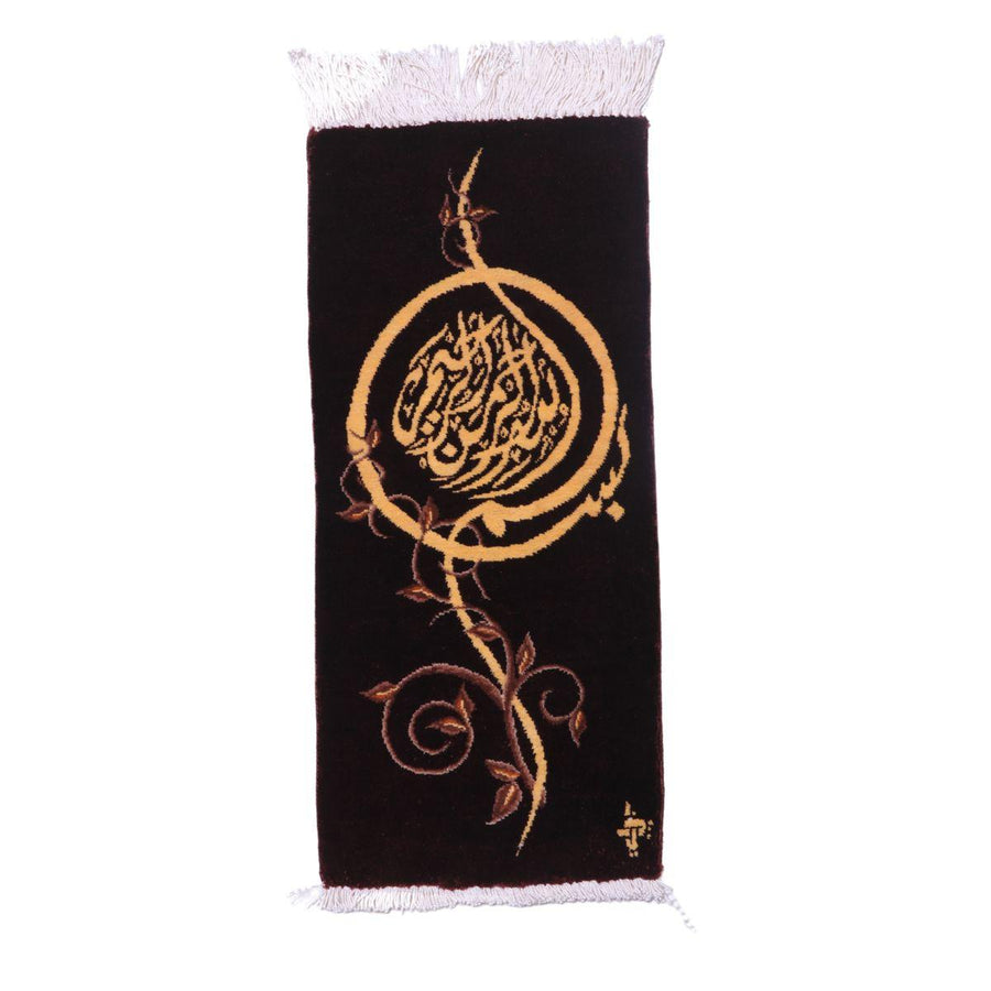 色:深いこげ茶をベースに、金色の書と蔓が静かに浮かびます。照明の角度で色の表情がやわらかく変わります。