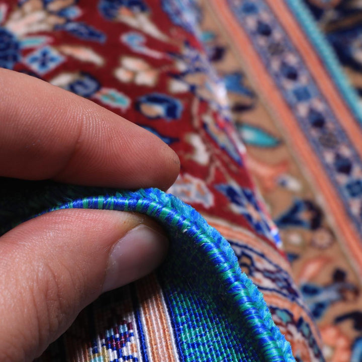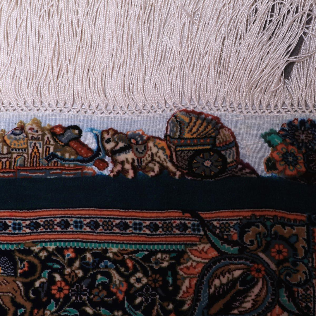 質感の良さ:シルク100%のなめらかさ。指で撫でると毛並みが流れ、光で艶がやさしく変化。さらりと軽い踏み心地が続きます。