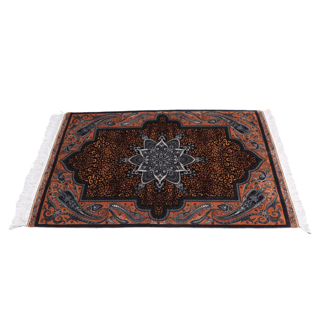 デザインの魅力:白銀の星花を中心に、曲線的なペイズリーを端正に配置。レオパード調の地模様がほどよい個性を添え、置き場所を選びません。