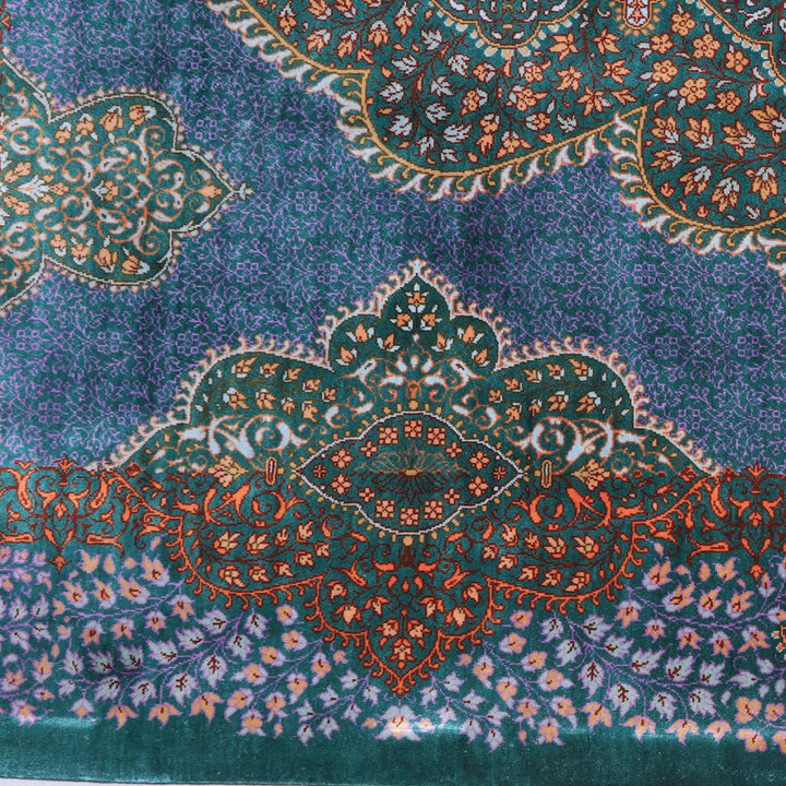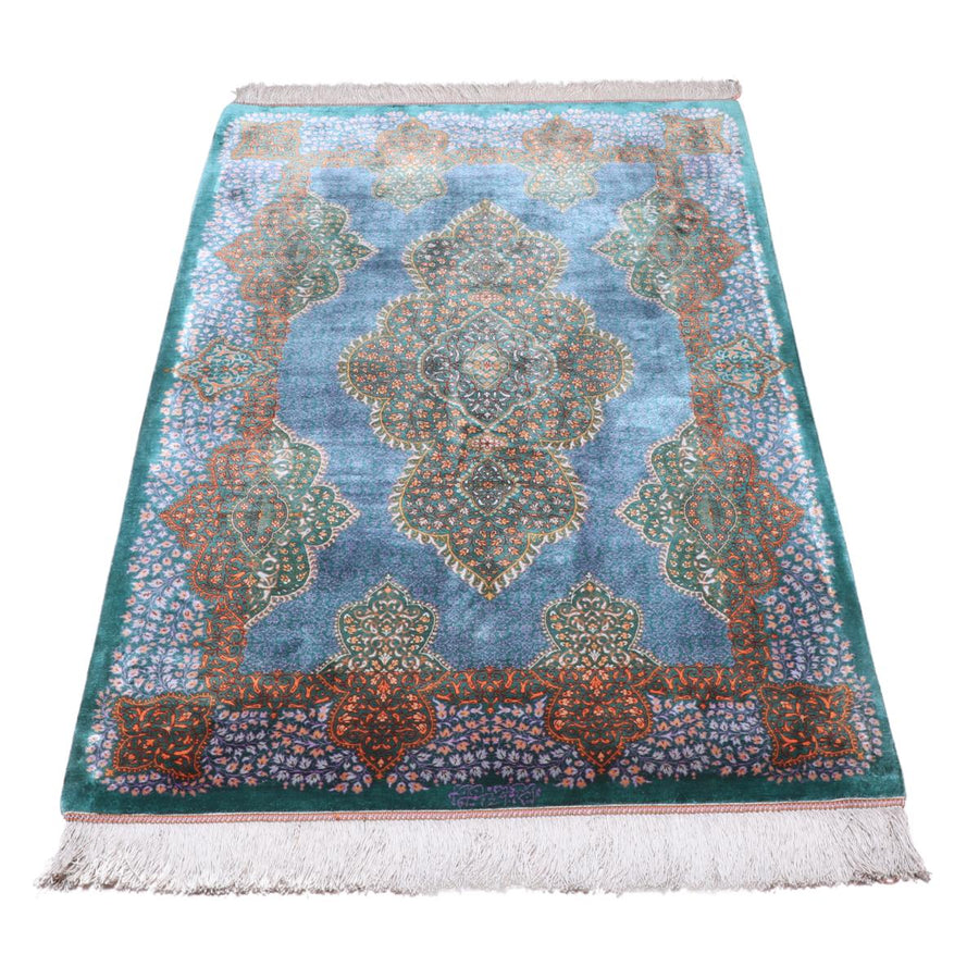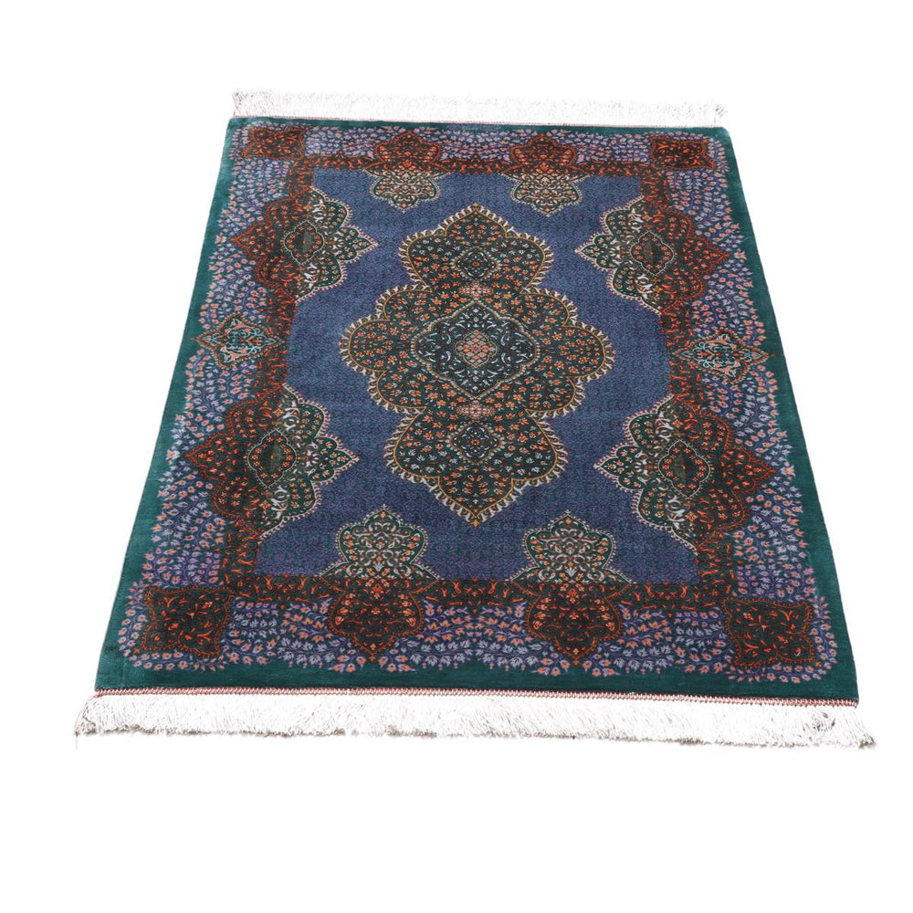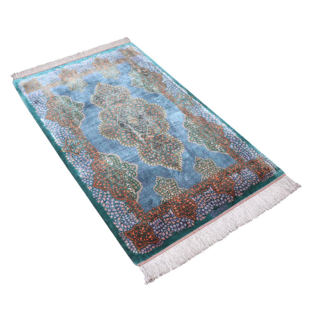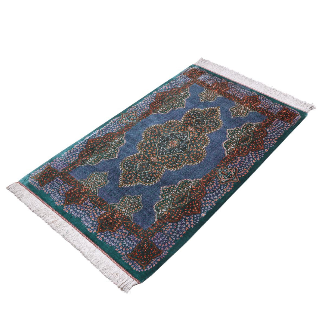 質感の良さ:シルク100%の滑らかな毛足。光の向きで青の濃淡と艶がやさしく変わり、しっとり上品。素足でも心地よく、季節を問わず使えます。