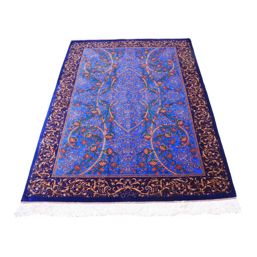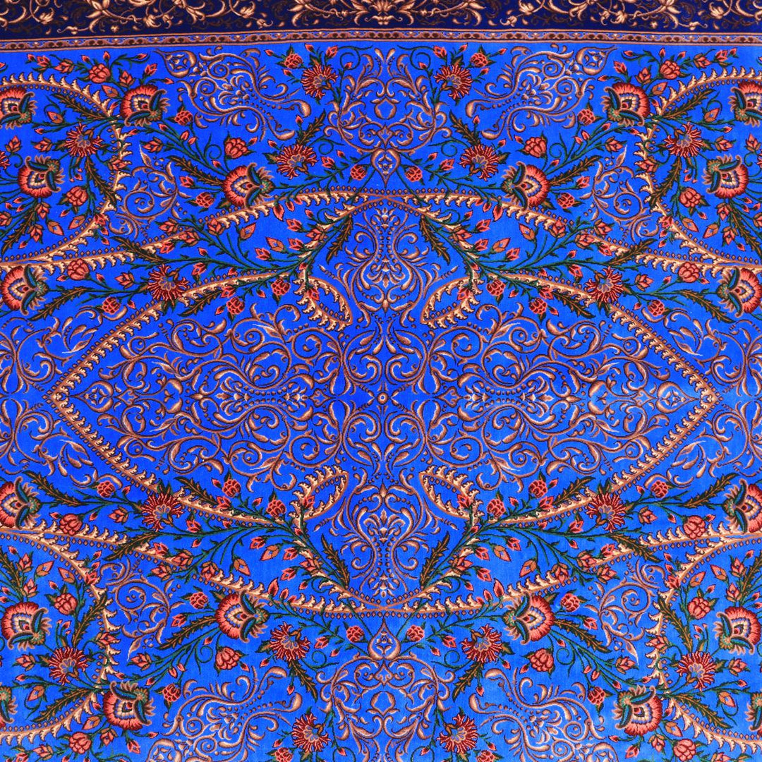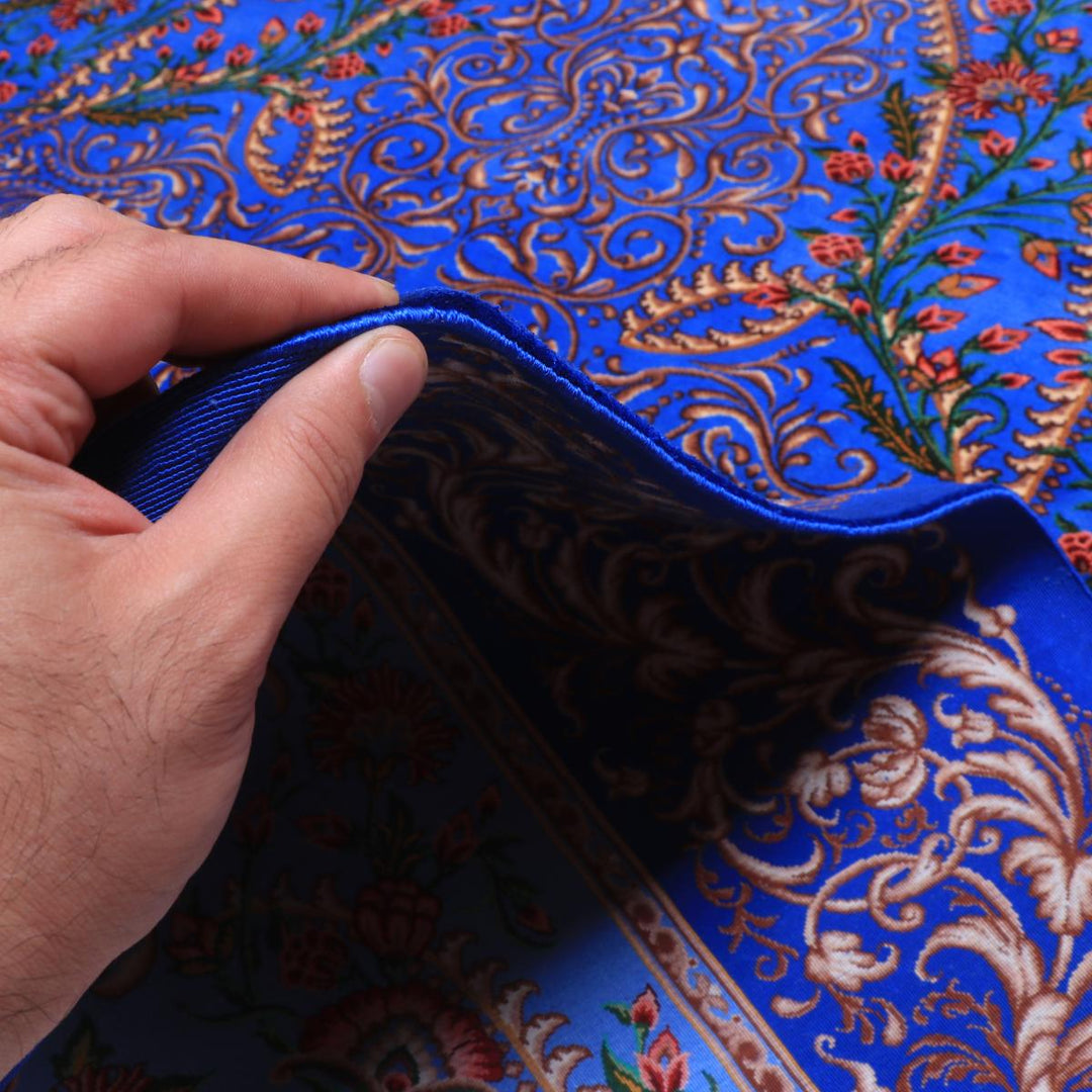 質感の良さ:シルク100%の密な毛並み。指で撫でるとすっと流れ、角度で艶がやわらかく変化。素足でもさらりと心地よい触感です。