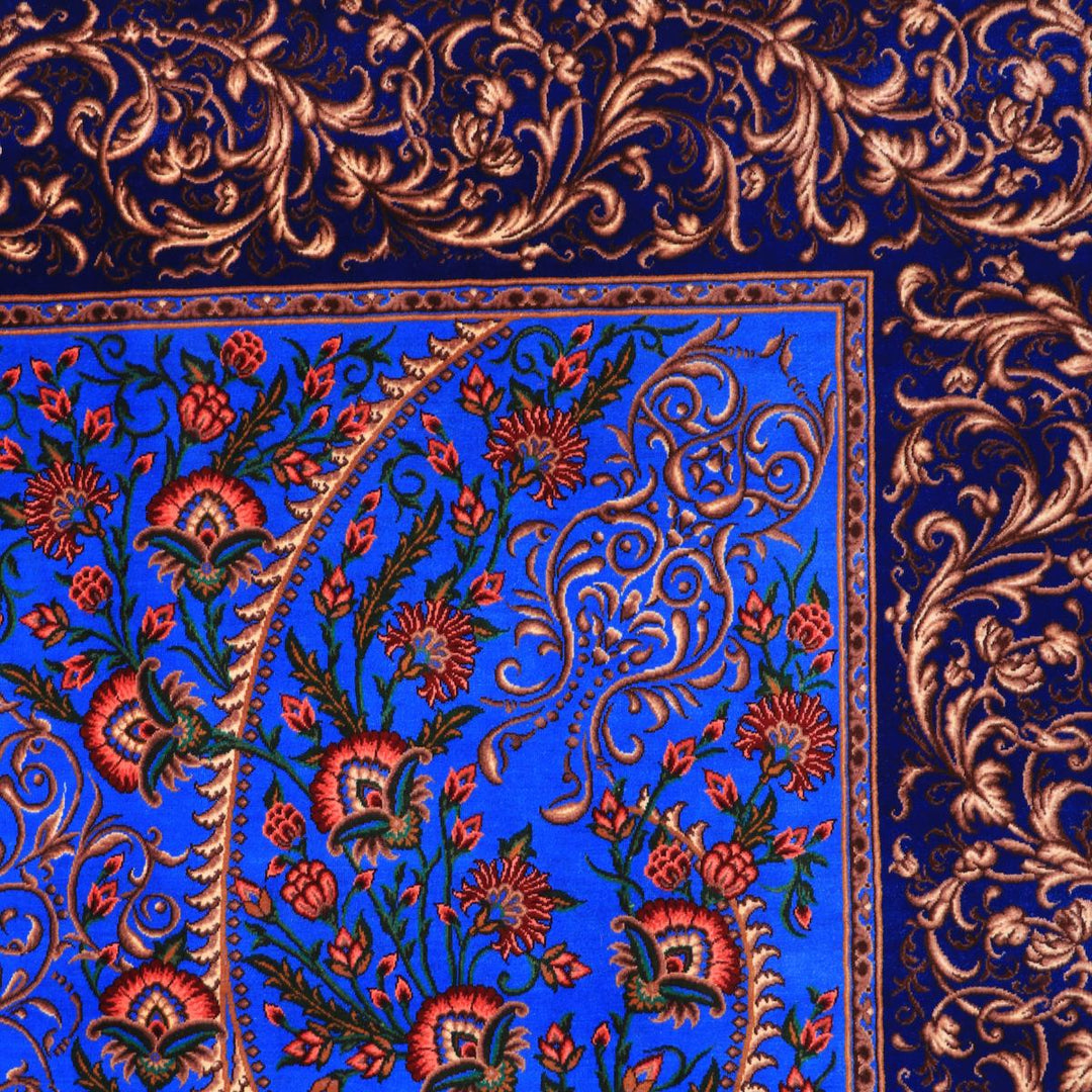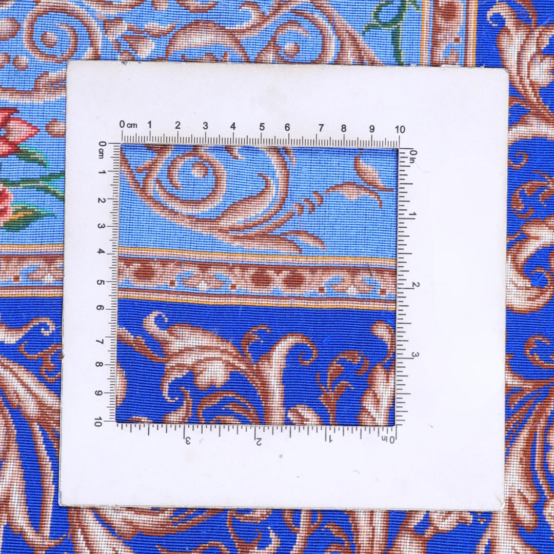 デザインの魅力:瑠璃の面に蔓と小花を左右対称に配した端正な構図。細い曲線が軽やかで、敷いても壁掛けでもすっきり映えます。