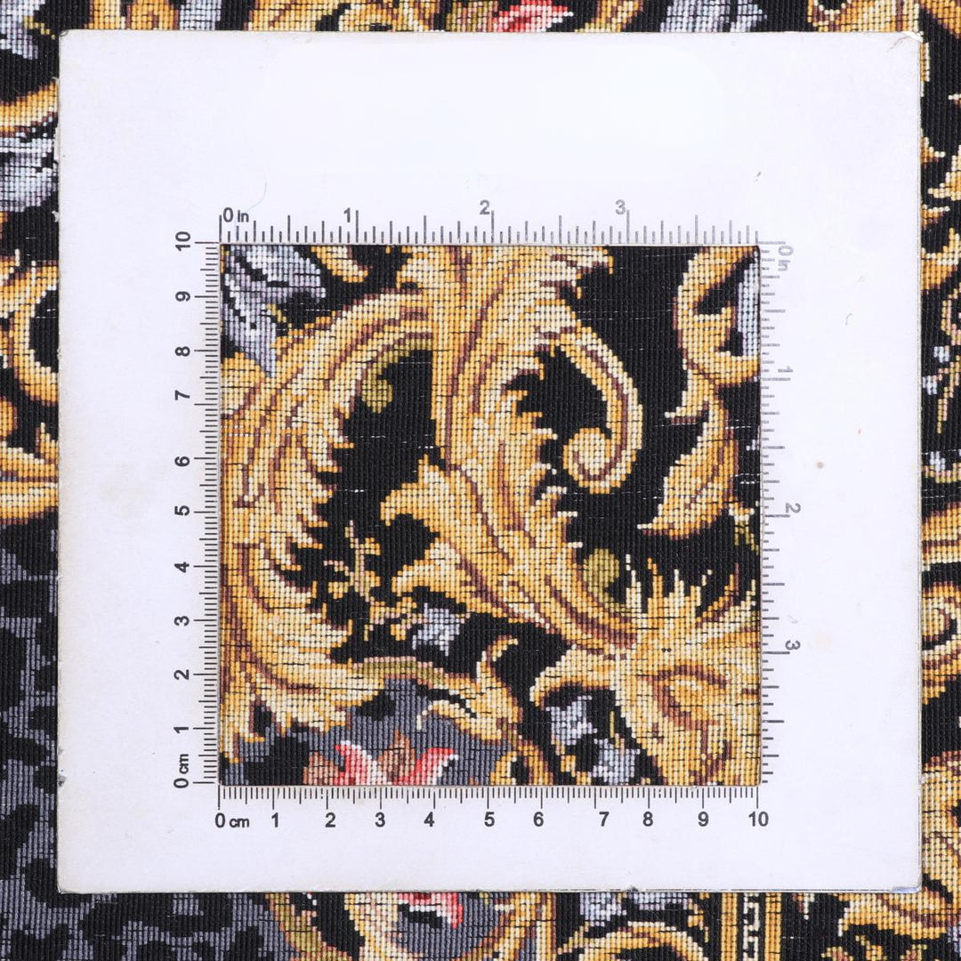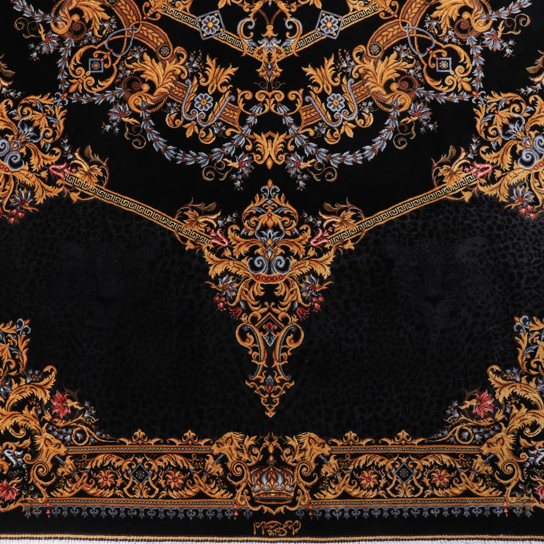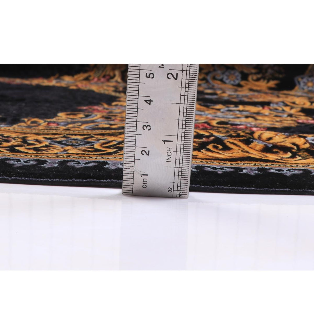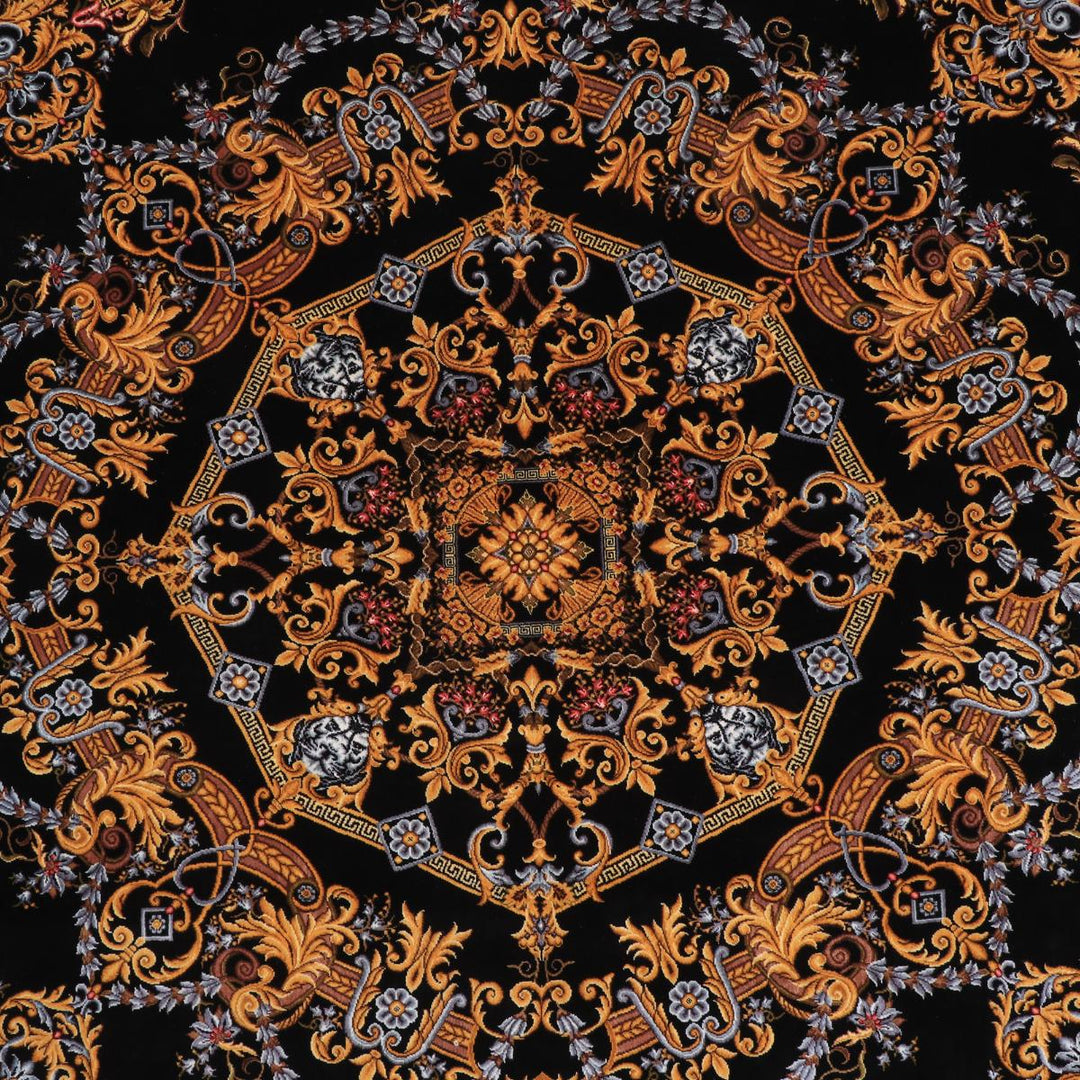デザインの魅力:八角メダリオンを中心に金のアラベスクが連なる端正な構図。広い余白と四隅の装飾でメリハリが出て、床でも壁でもすっきり映えます。