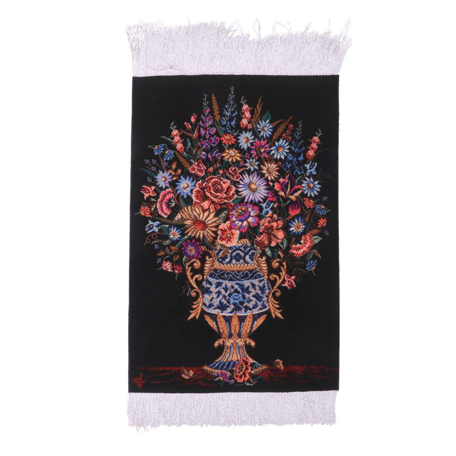 デザインの魅力:黒地に大ぶりの花瓶から花束がふんわり広がる端正な構図。余白が効き、玄関や壁掛けにもすっきり映えます。