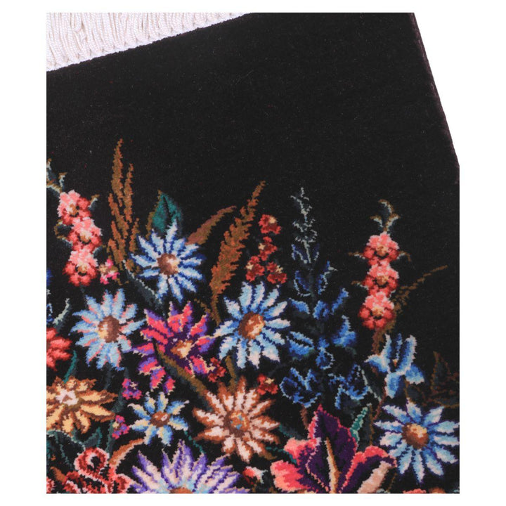 質感の良さ:シルク100%のきめ細かな毛並み。指で撫でるとすっと流れ、花の輪郭が立ちます。艶は角度で上品に移ろい、さらりと心地よい手触りです。