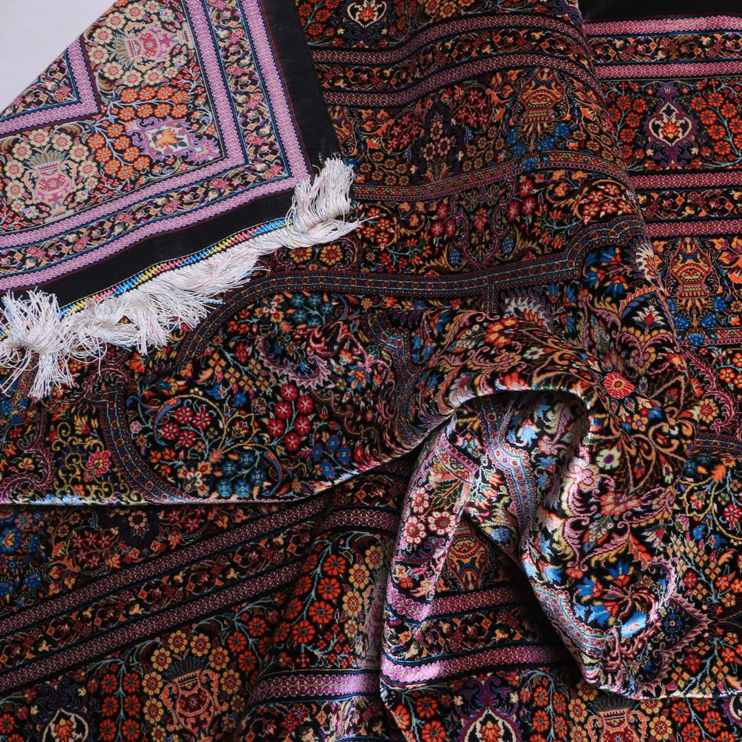質感の良さ:シルク100%のさらりとした手触り。光で艶と色がやわらかく変化し、柄に奥行きが出ます。素足でも快適な厚みです。
