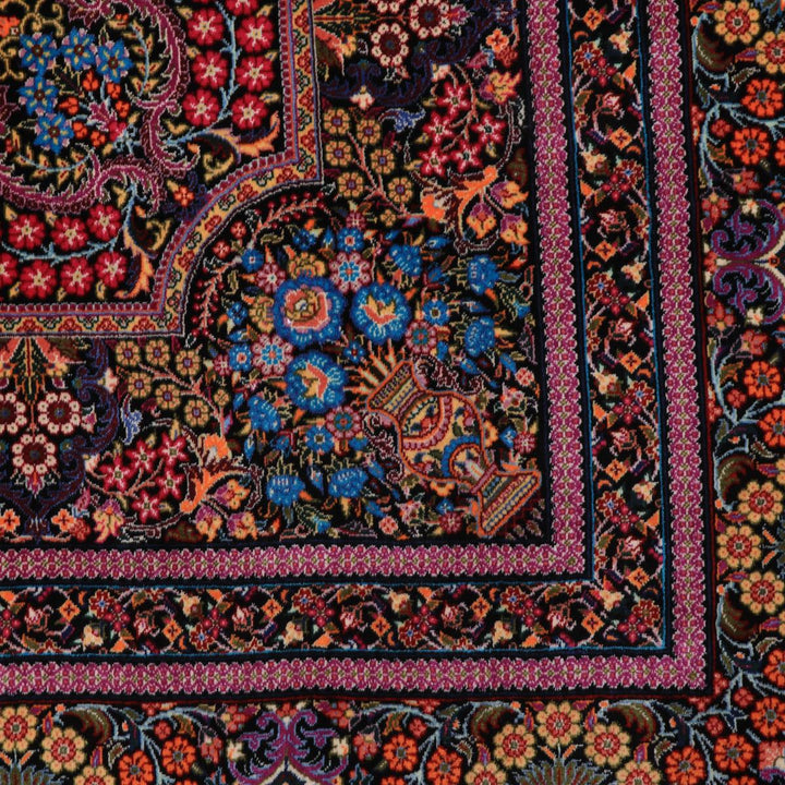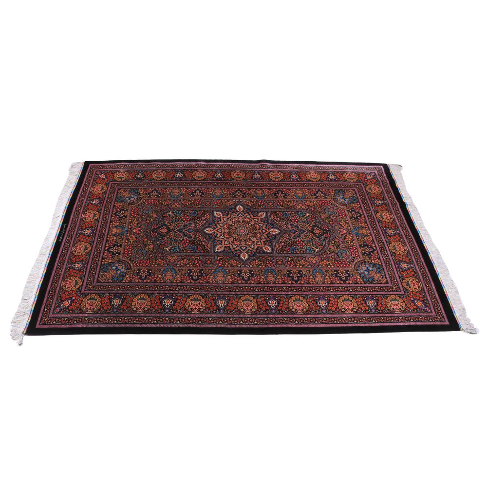 デザインの魅力:中央の星形メダリオンを縦長のアーチ枠が包み、小花がびっしり。多重の額縁が構図を整え、空間を上品にまとめます。