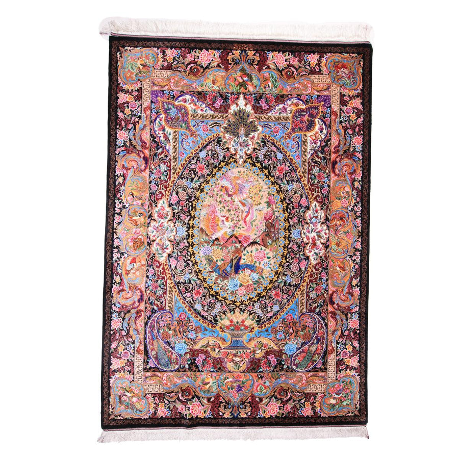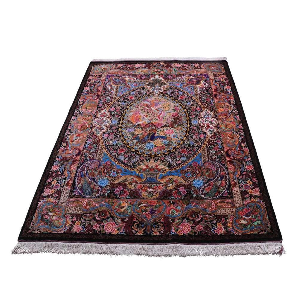 質感の良さ:シルク100%のなめらかな手触り。角度で艶がやわらかく変化し、細部の柄が映えます。素足でも心地よい踏み心地です。