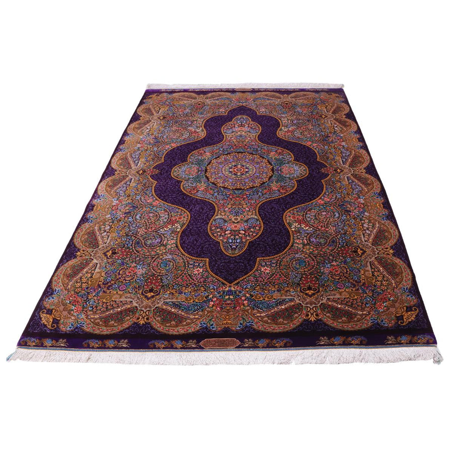 色:深いロイヤルパープルが基調。金茶の縁取りにターコイズやコーラル、若草色が映えます。落ち着きと華やかさをほどよく両立。