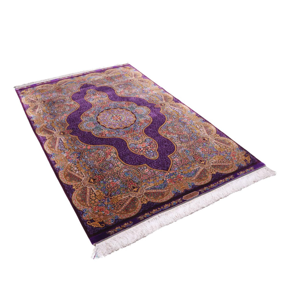 デザインの魅力:大ぶりの曲線メダリオンを中心に、周囲へ唐草とペイズリーが連なります。伸びやかなラインで、敷くだけで空間がきれいに映えます。