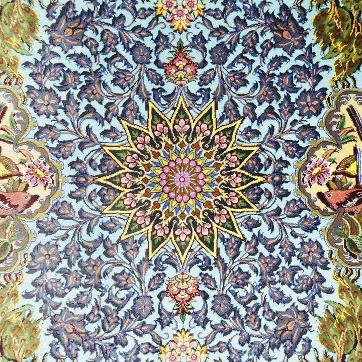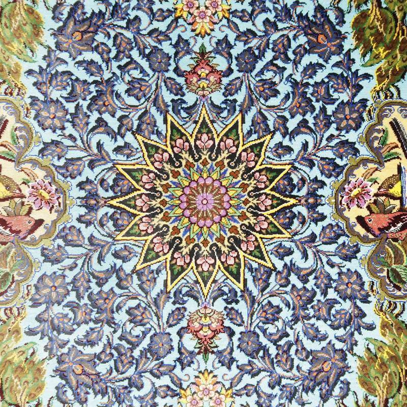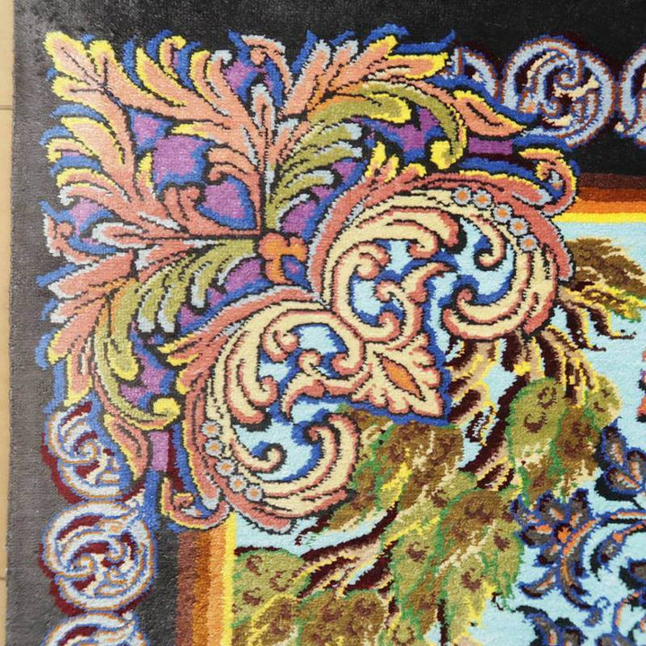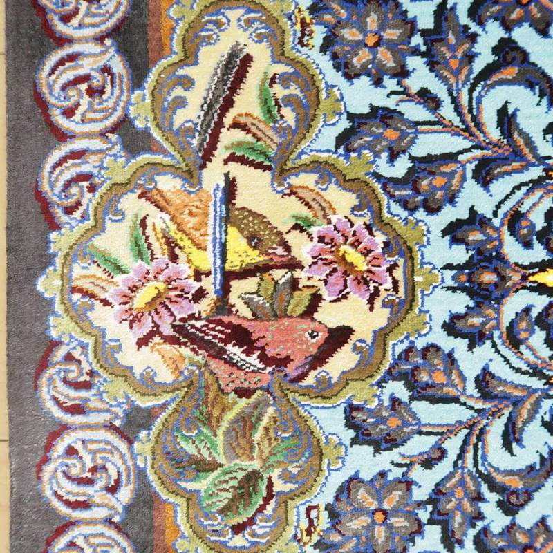 驚くような細かな織り目とビロードのような生地、肌に吸い付くようなシルクの艶やかな光沢感が豪華絢爛。まさに、「The ペルシャ絨毯」と言うべき最高峰のペルシャ絨毯は、もはや工芸品ではなく美術品としての価値となります。シルクの絨毯は毛足の光沢が見る向きによってまったく趣の異なる色合いになりますので、敷く際は向きを調整していただくとよいです。