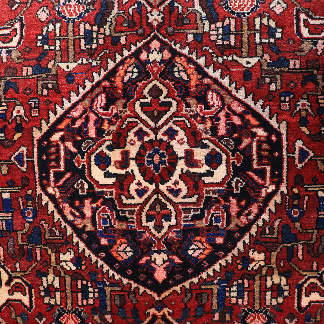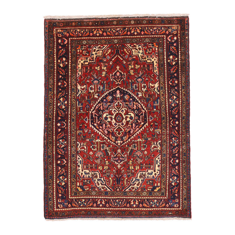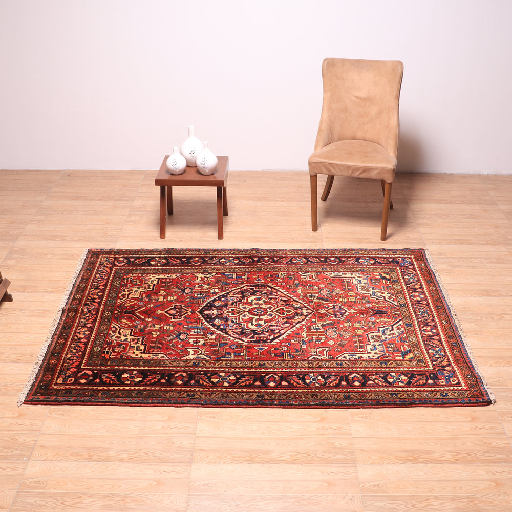 ・深みのあるレンガレッドをベースに、ネイビーやアイボリー、イエローがバランスよく織り交ぜられています。