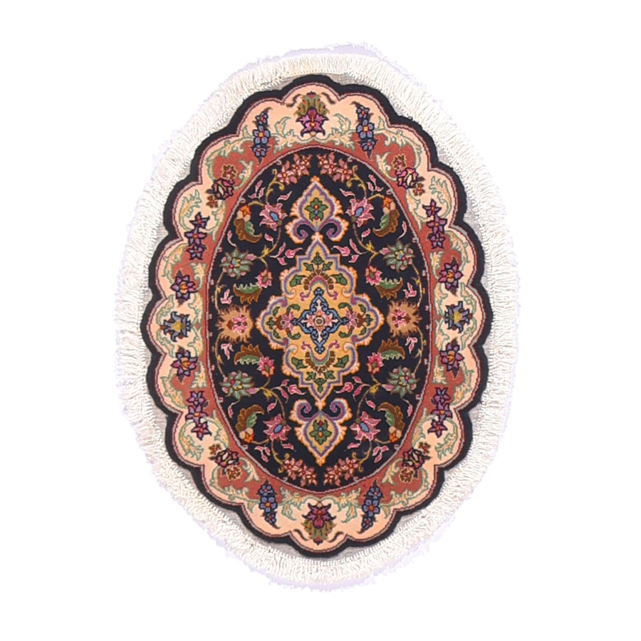 ・中央のメダリオンと草花モチーフが美しく調和。タブリーズならではの繊細で複雑なデザインが特徴です。