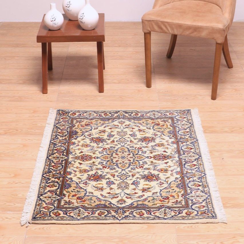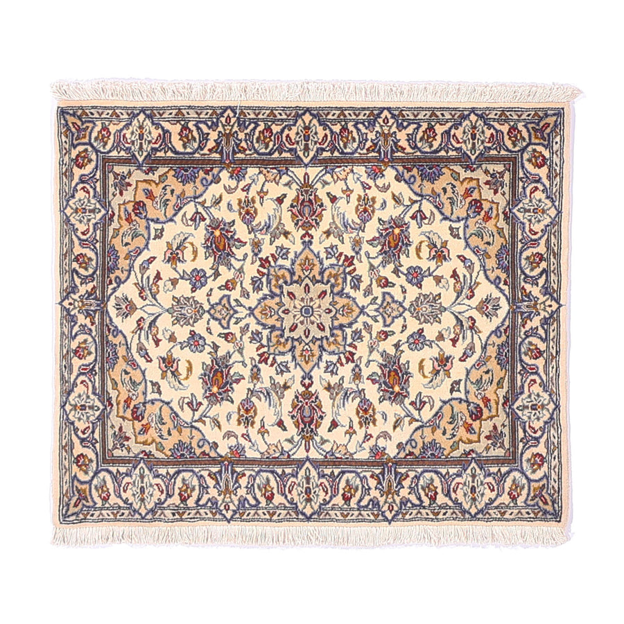 ・中央にはカーシャン伝統の繊細なメダリオン。周囲に咲き誇る花々や唐草模様がエレガントな雰囲気をプラス。