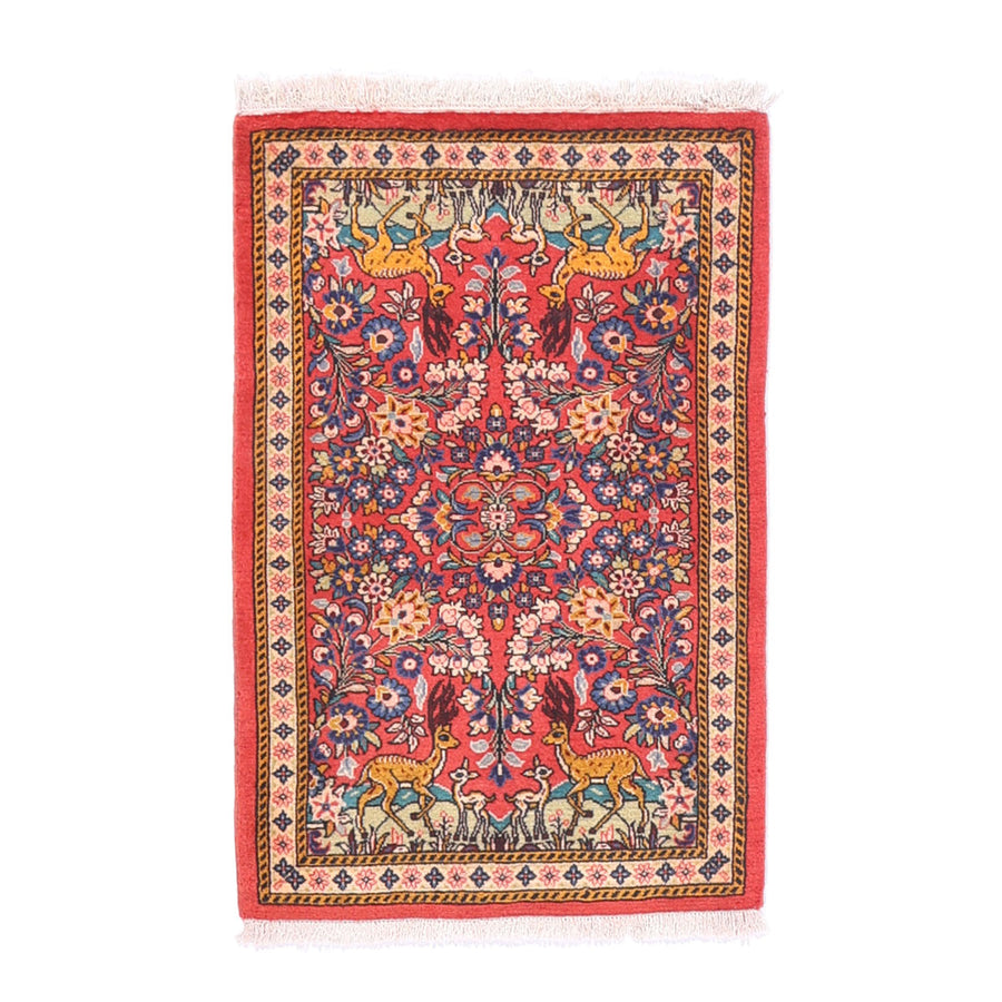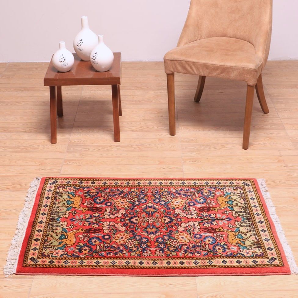 ・四隅には愛らしい鹿のデザインが配され、動物たちが絨毯に温もりと遊び心を添えています。