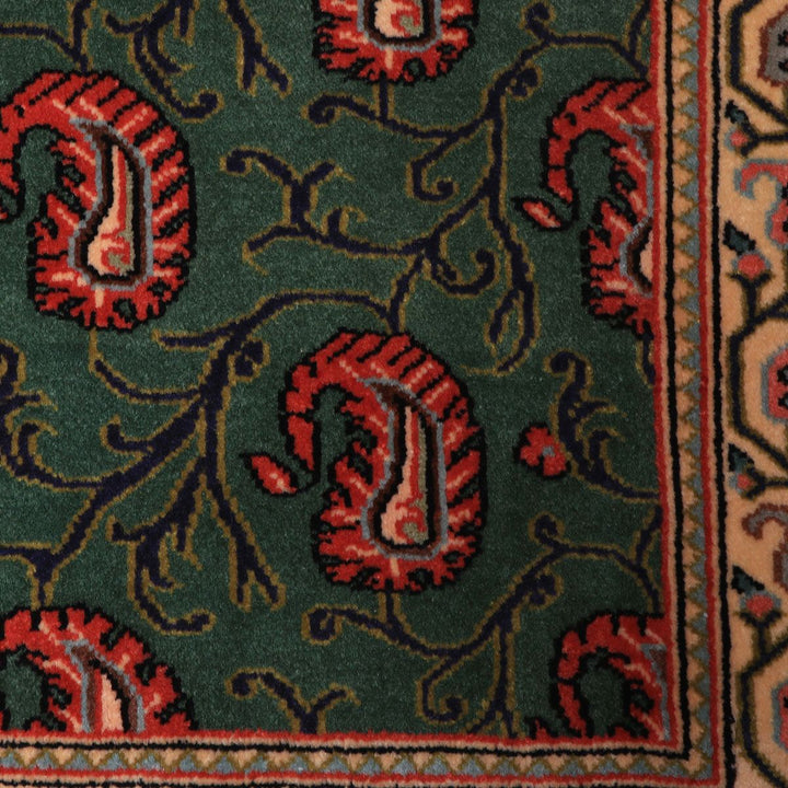 クム産ならではの上質なウールを使い、熟練の職人が一枚一枚丁寧に織り上げた本格派ペルシャ絨毯です。
