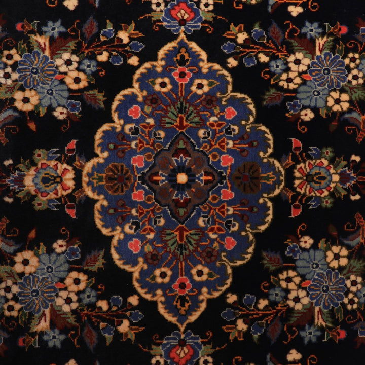 ・クム伝統のメダリオン(花章)を中心に、繊細な花柄や唐草模様が広がります。