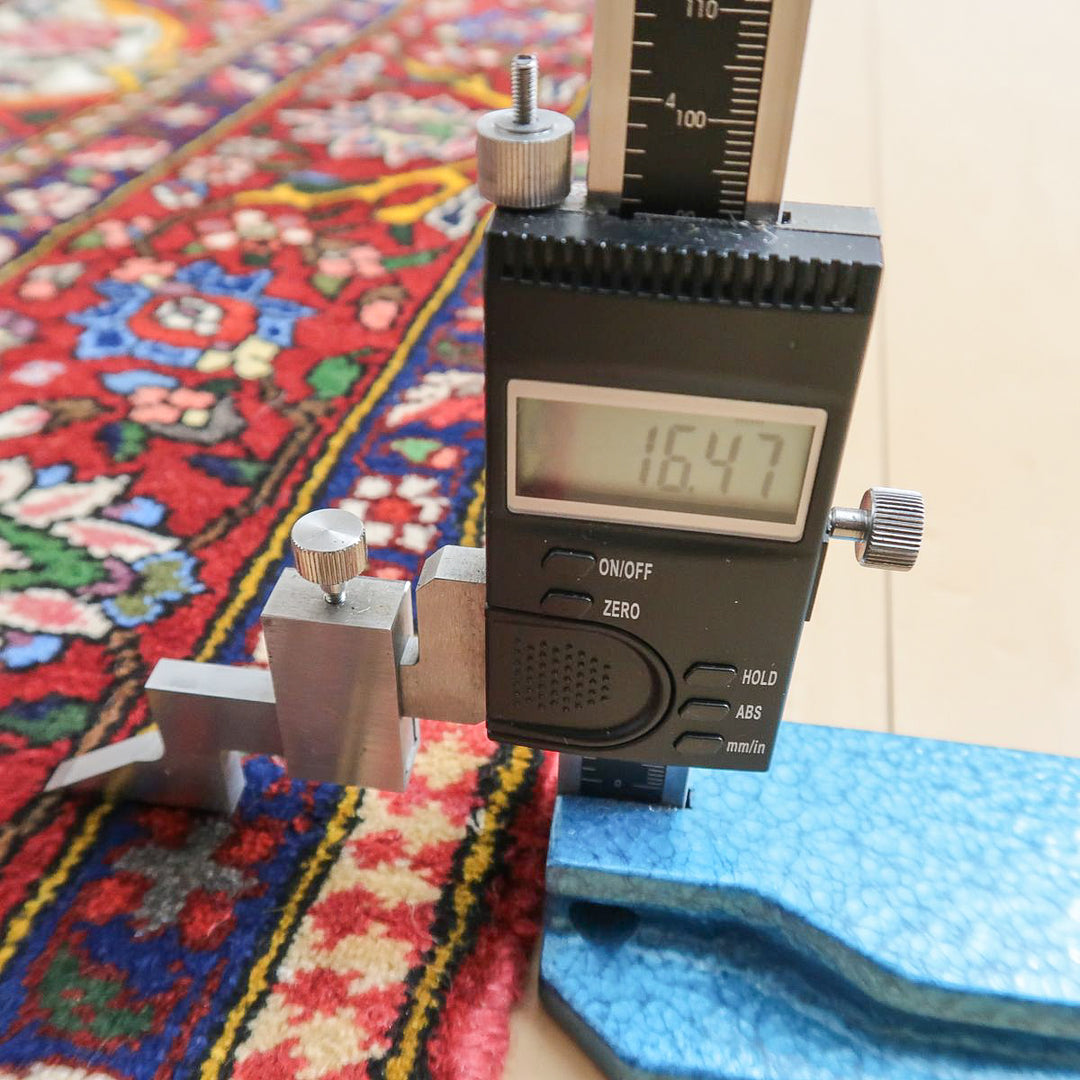 耐久性に優れた羊毛が使用され、織る工程で強く叩きこまれるため、どっしりとした固い生地となり、ペルシア絨毯の中で最も耐久性のある一つとなっています。バクティアリ絨毯の最も一般的な模様ははKhesti(庭園の文様)と呼ばれ、格子に組んだ植物や動物、ペルシア庭園を象徴しています。