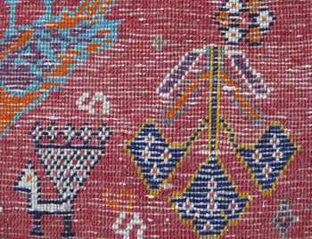 枯れた色合いとカシュガイの伝統柄が味わいあるアンティクオールドのカシュガイ絨毯。デザイン性と温かみのある素朴な雰囲気に気分がなごみます。カシュガイ絨毯の厚みは、だいたい10ミリ前後で、細手の糸のさらりとした毛足感。玄関や足元マットのほか、座布団や壁飾りとして、インテリア上級者に取り入れて頂きたいアイテムです。こちらは、織りの細かな作りです。