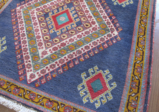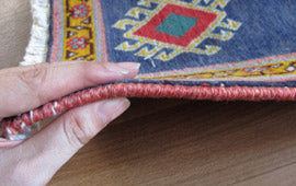 枯れた色合いとカシュガイの伝統柄が味わいあるアンティクオールドのカシュガイ絨毯。デザイン性と温かみのある素朴な雰囲気に気分がなごみます。カシュガイ絨毯の厚みは、だいたい10ミリ前後で、細手の糸のさらりとした毛足感。玄関や足元マットのほか、座布団や壁飾りとして、インテリア上級者に取り入れて頂きたいアイテムです。こちらは、織りの細かな作りです。