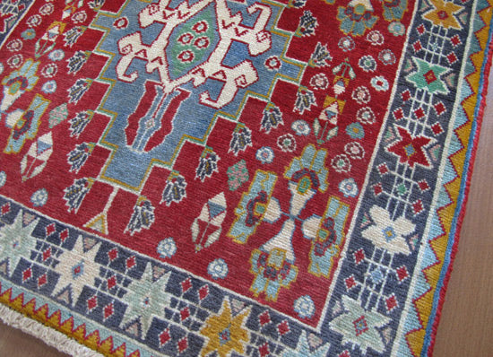 枯れた色合いとカシュガイの伝統柄が味わいあるアンティクオールドのカシュガイ絨毯。デザイン性と温かみのある素朴な雰囲気に気分がなごみます。カシュガイ絨毯の厚みは、だいたい10ミリ前後で、細手の糸のさらりとした毛足感。玄関や足元マットのほか、座布団や壁飾りとして、インテリア上級者に取り入れて頂きたいアイテムです。こちらは、丁寧な織りです。
