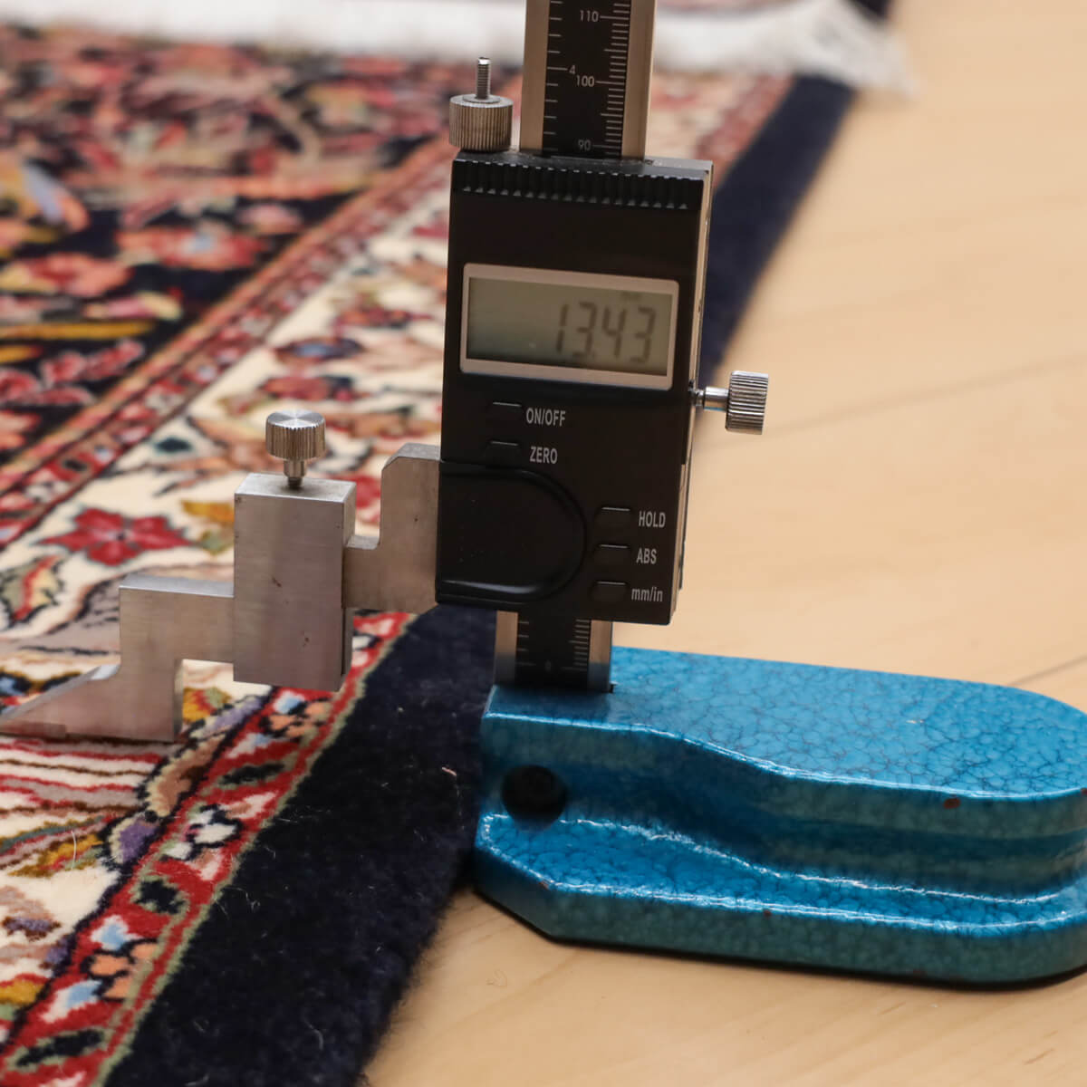質感の良さ 手織りならではの細やかで均一な織り目が、適度な厚みと柔らかな弾力性をもたらしています。イラン産ウール素材の温かみと高い耐久性を備えています。
