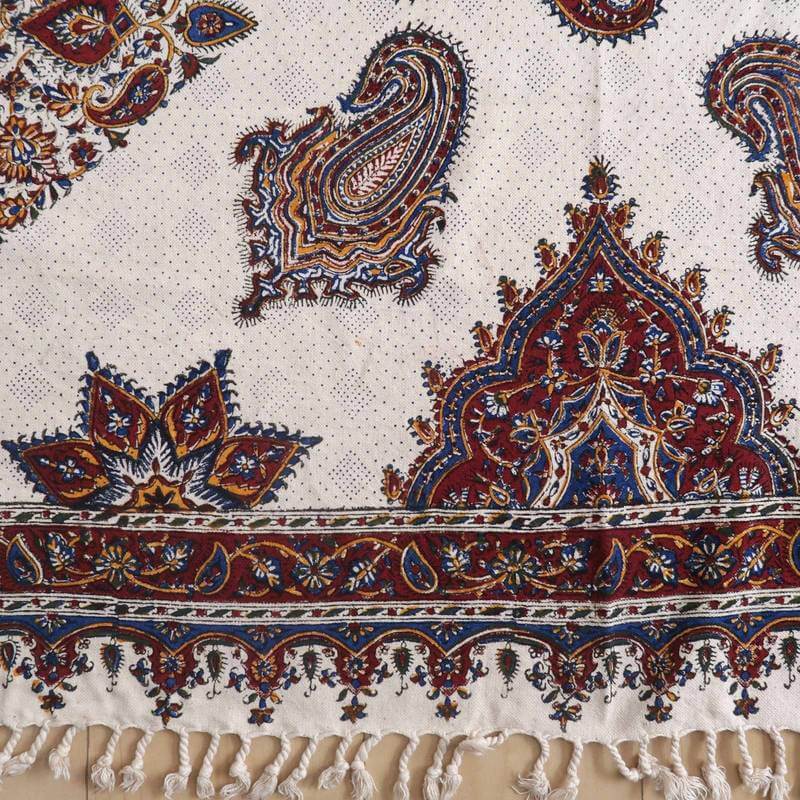 唐草模様はペルシャからシルクロードを伝って日本に伝来したと言われますが、エキゾチックなペイズリー柄はどことなく懐かしいレトロな雰囲気も持っていて思いのほか、インテリアに良く馴染みます。生地は、しっかりと厚みのある木綿100%の一枚布で、しなやかで柔らかな質感。シワになりにくいので、ソファカバーやベッドカバー、また、カーテンのような間仕切りに使ったりと大変使いやすいインテリアファブリックで、これ一枚でお部屋の印象がぐっと素敵になります。