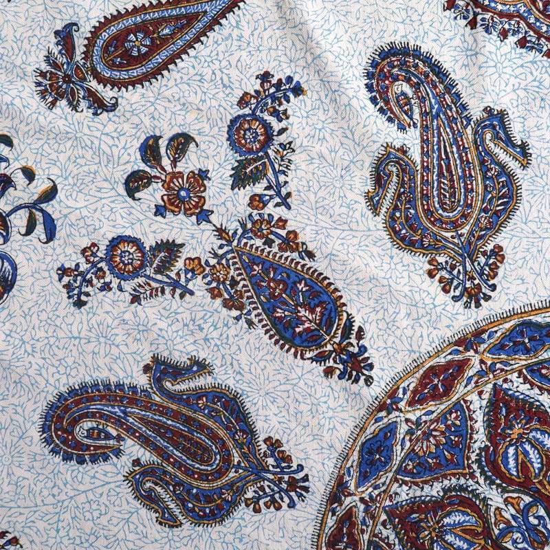 唐草模様はペルシャからシルクロードを伝って日本に伝来したと言われますが、エキゾチックなペイズリー柄はどことなく懐かしいレトロな雰囲気も持っていて思いのほか、インテリアに良く馴染みます。生地は、しっかりと厚みのある木綿100%の一枚布で、しなやかで柔らかな質感。シワになりにくいので、ソファカバーやベッドカバー、また、カーテンのような間仕切りに使ったりと大変使いやすいインテリアファブリックで、これ一枚でお部屋の印象がぐっと素敵になります。