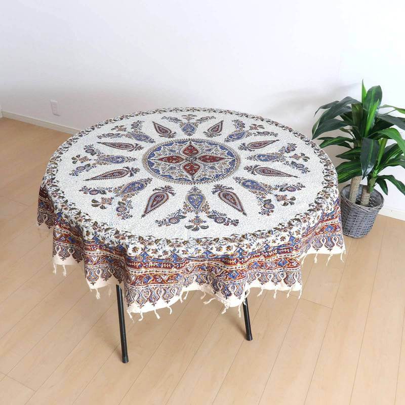 唐草模様はペルシャからシルクロードを伝って日本に伝来したと言われますが、エキゾチックなペイズリー柄はどことなく懐かしいレトロな雰囲気も持っていて思いのほか、インテリアに良く馴染みます。生地は、しっかりと厚みのある木綿100%の一枚布で、しなやかで柔らかな質感。シワになりにくいので、ソファカバーやベッドカバー、また、カーテンのような間仕切りに使ったりと大変使いやすいインテリアファブリックで、これ一枚でお部屋の印象がぐっと素敵になります。