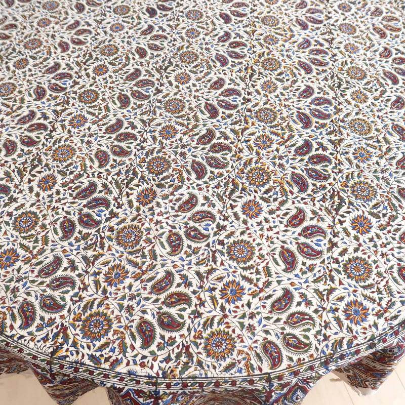 唐草模様はペルシャからシルクロードを伝って日本に伝来したと言われますが、エキゾチックなペイズリー柄はどことなく懐かしいレトロな雰囲気も持っていて思いのほか、インテリアに良く馴染みます。生地は、しっかりと厚みのある木綿100%の一枚布で、しなやかで柔らかな質感。シワになりにくいので、ソファカバーやベッドカバー、また、カーテンのような間仕切りに使ったりと大変使いやすいインテリアファブリックで、これ一枚でお部屋の印象がぐっと素敵になります。