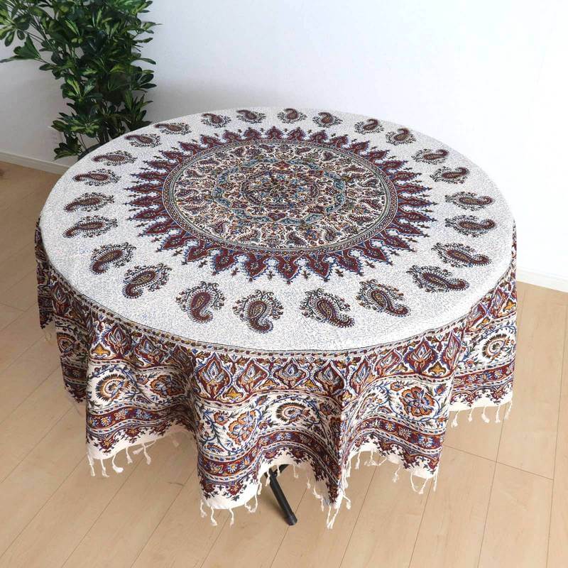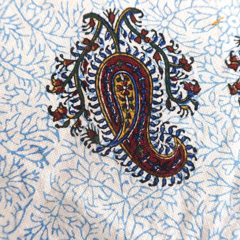 唐草模様はペルシャからシルクロードを伝って日本に伝来したと言われますが、エキゾチックなペイズリー柄はどことなく懐かしいレトロな雰囲気も持っていて思いのほか、インテリアに良く馴染みます。生地は、しっかりと厚みのある木綿100%の一枚布で、しなやかで柔らかな質感。シワになりにくいので、ソファカバーやベッドカバー、また、カーテンのような間仕切りに使ったりと大変使いやすいインテリアファブリックで、これ一枚でお部屋の印象がぐっと素敵になります。